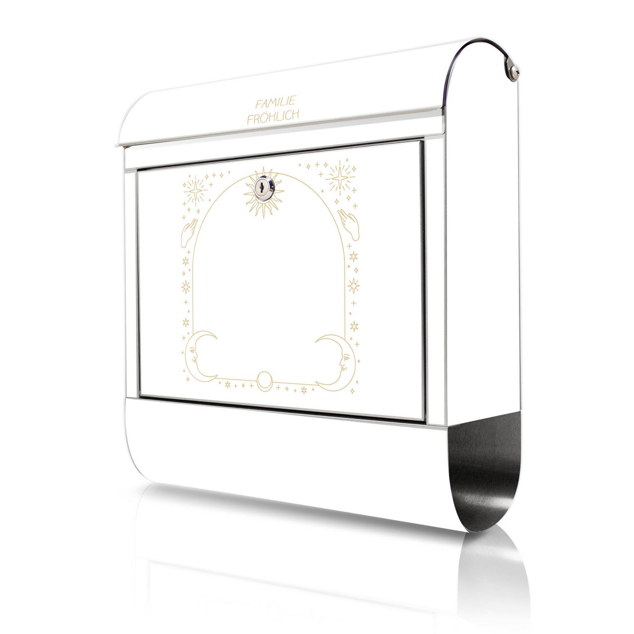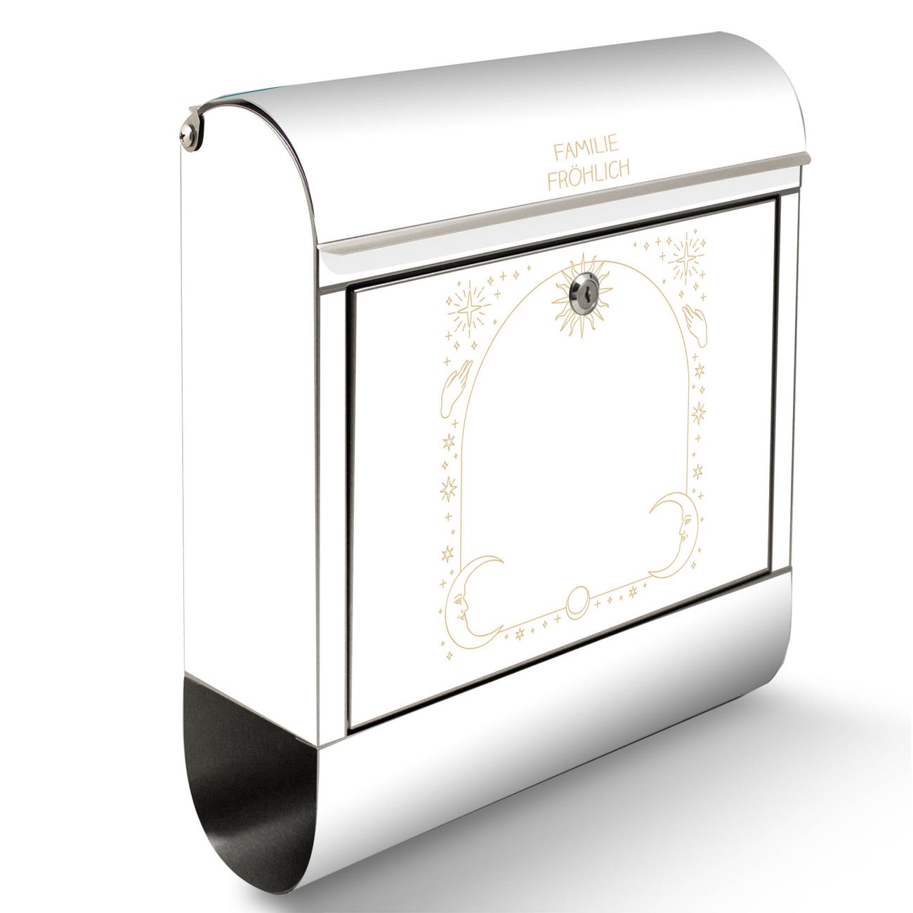 Wandbriefkasten Edelstahl Motiv Sonne und Mond Symbole
