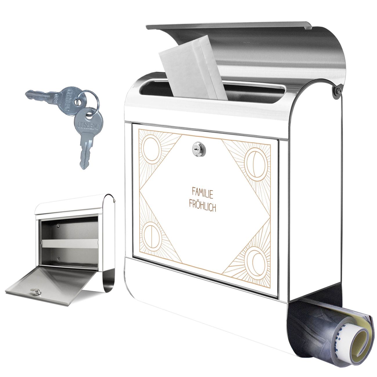 Wandbriefkasten Edelstahl Motiv Sonnen- und Mondrahmen
