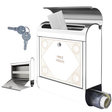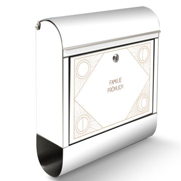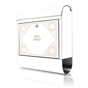 FUNKTION: Der banjado Edelstahl Briefkasten mit Motiv Motiv Sonnen- und Mondrahmen bietet Ihnen mit seinem Fassungsvermögen genügend Platz auch für große A4 Sendungen. Das integrierte Zeitungsfach eignet sich hervorragend um unkompliziert die Tageszeitung zu fassen. Auf Wunsch können Sie bei uns den passenden Ständer kaufen und so aus dem Wandbriefkasten einen Standbriefkasten machen. DESIGN: Der Motivbriefkasten hat ein sehr ansprechendes und ausgefallenes Design, damit entlocken Sie Ihren Nachbarn und dem Postboten ein Lächeln. Heben Sie Sich ab von der tristen grauen Masse ohne auf Funktionalität zu verzichten. DETAILS: Der Design Briefkasten mit Motiv Motiv Sonnen- und Mondrahmen besteht aus hochwertigem 18/0 Edelstahl. Das Motiv besteht aus einer wetter- und UV-resistenten Folie, die mit einem Schutzlaminat überzogen ist. Der Briefkasten wird mit Montagematerial und zwei Schlüsseln geliefert. NUTZEN: Sie können diesen Briefkasten sowohl als Wandbriefkasten montieren oder einen passenden Ständer auswählen und als Standbriefkasten einbetonieren. Die Größe bietet genügend Platz für Sendungen aller Art, das hochwertige Edelstahl ist rostfrei und die Motivfolie absolut wetterfest. SCHUTZ: Um Ihre Post optimal vor Witterungseinflüssen wie Starkregen zu schützen, empfehlen wir, den Briefkasten geschützt anzubringen. BANJADO: Ihr Briefkasten wird in Sachsen in einer kleinen Manufaktur von Hand veredelt. Die Motivfolie ist lösungsmittelfrei und schutzlaminiert, dies sorgt für einen langen Halt. Wir legen großen Wert auf die Verbindung von Funktionalität und Design. Sie erhalten Handarbeit aus Sachsen.