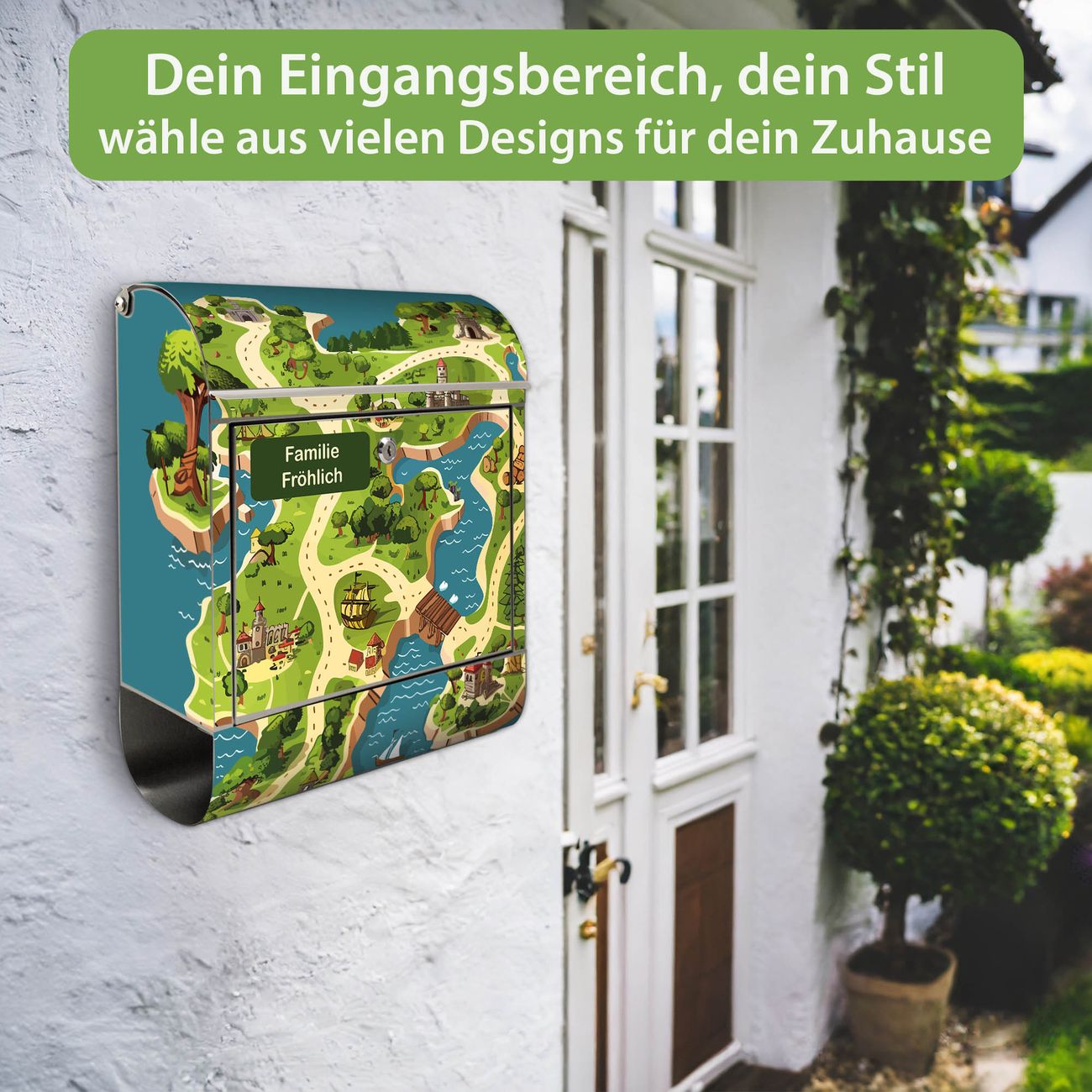 Wandbriefkasten Edelstahl Motiv Spielinsel