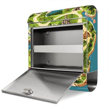 FUNKTION: Der banjado Edelstahl Briefkasten mit Motiv Motiv Spielinsel bietet Ihnen mit seinem Fassungsvermögen genügend Platz auch für große A4 Sendungen. Das integrierte Zeitungsfach eignet sich hervorragend um unkompliziert die Tageszeitung zu fassen. Auf Wunsch können Sie bei uns den passenden Ständer kaufen und so aus dem Wandbriefkasten einen Standbriefkasten machen. DESIGN: Der Motivbriefkasten hat ein sehr ansprechendes und ausgefallenes Design, damit entlocken Sie Ihren Nachbarn und dem Postboten ein Lächeln. Heben Sie Sich ab von der tristen grauen Masse ohne auf Funktionalität zu verzichten. DETAILS: Der Design Briefkasten mit Motiv Motiv Spielinsel besteht aus hochwertigem 18/0 Edelstahl. Das Motiv besteht aus einer wetter- und UV-resistenten Folie, die mit einem Schutzlaminat überzogen ist. Der Briefkasten wird mit Montagematerial und zwei Schlüsseln geliefert. NUTZEN: Sie können diesen Briefkasten sowohl als Wandbriefkasten montieren oder einen passenden Ständer auswählen und als Standbriefkasten einbetonieren. Die Größe bietet genügend Platz für Sendungen aller Art, das hochwertige Edelstahl ist rostfrei und die Motivfolie absolut wetterfest. SCHUTZ: Um Ihre Post optimal vor Witterungseinflüssen wie Starkregen zu schützen, empfehlen wir, den Briefkasten geschützt anzubringen. BANJADO: Ihr Briefkasten wird in Sachsen in einer kleinen Manufaktur von Hand veredelt. Die Motivfolie ist lösungsmittelfrei und schutzlaminiert, dies sorgt für einen langen Halt. Wir legen großen Wert auf die Verbindung von Funktionalität und Design. Sie erhalten Handarbeit aus Sachsen.