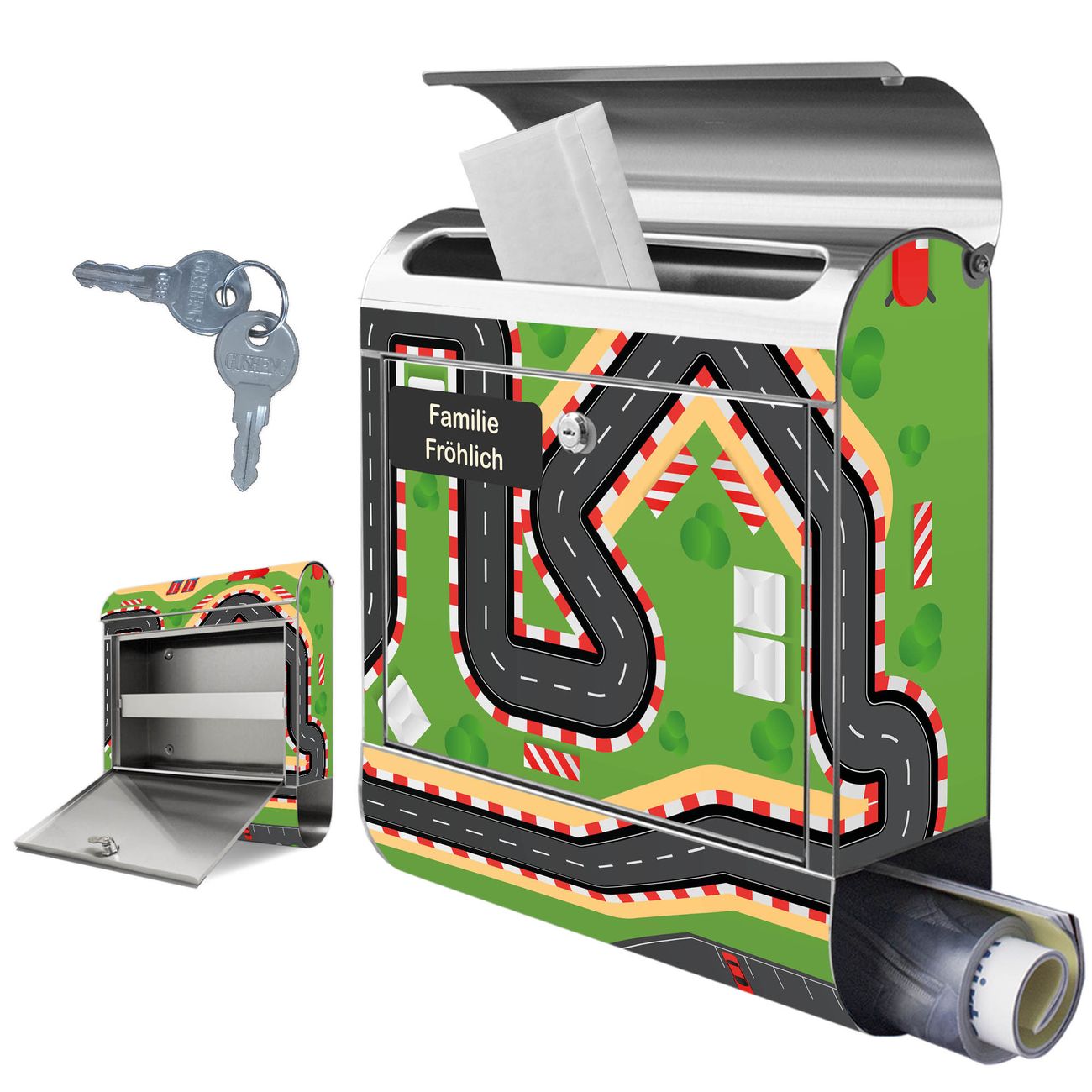 Wandbriefkasten Edelstahl Motiv Spielstraße 1