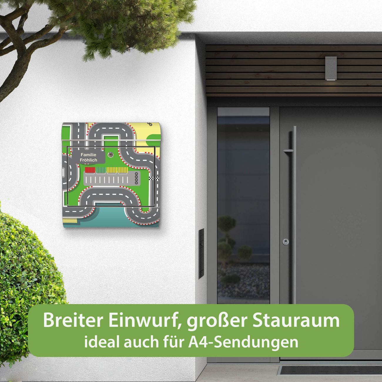Wandbriefkasten Edelstahl Motiv Spielstraße 2