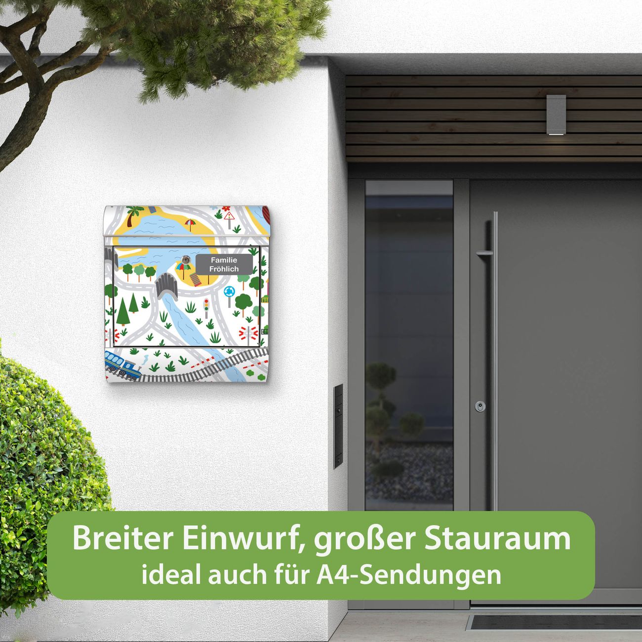 Wandbriefkasten Edelstahl Motiv Spielstraße 4