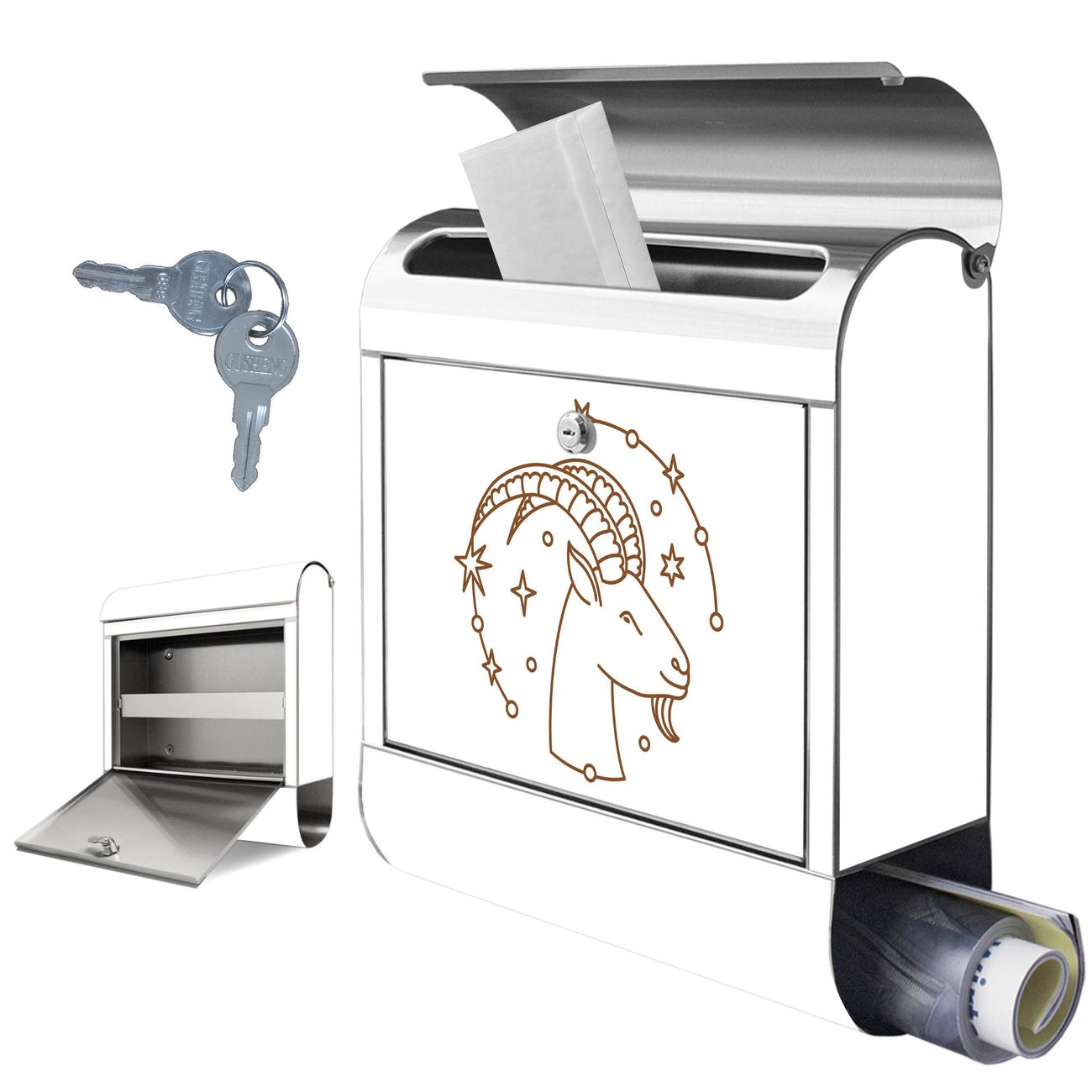Wandbriefkasten Edelstahl Motiv Steinbock Sternzeichen