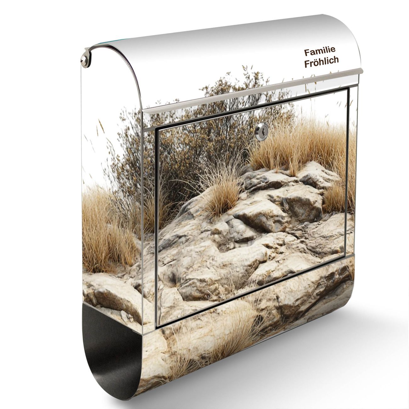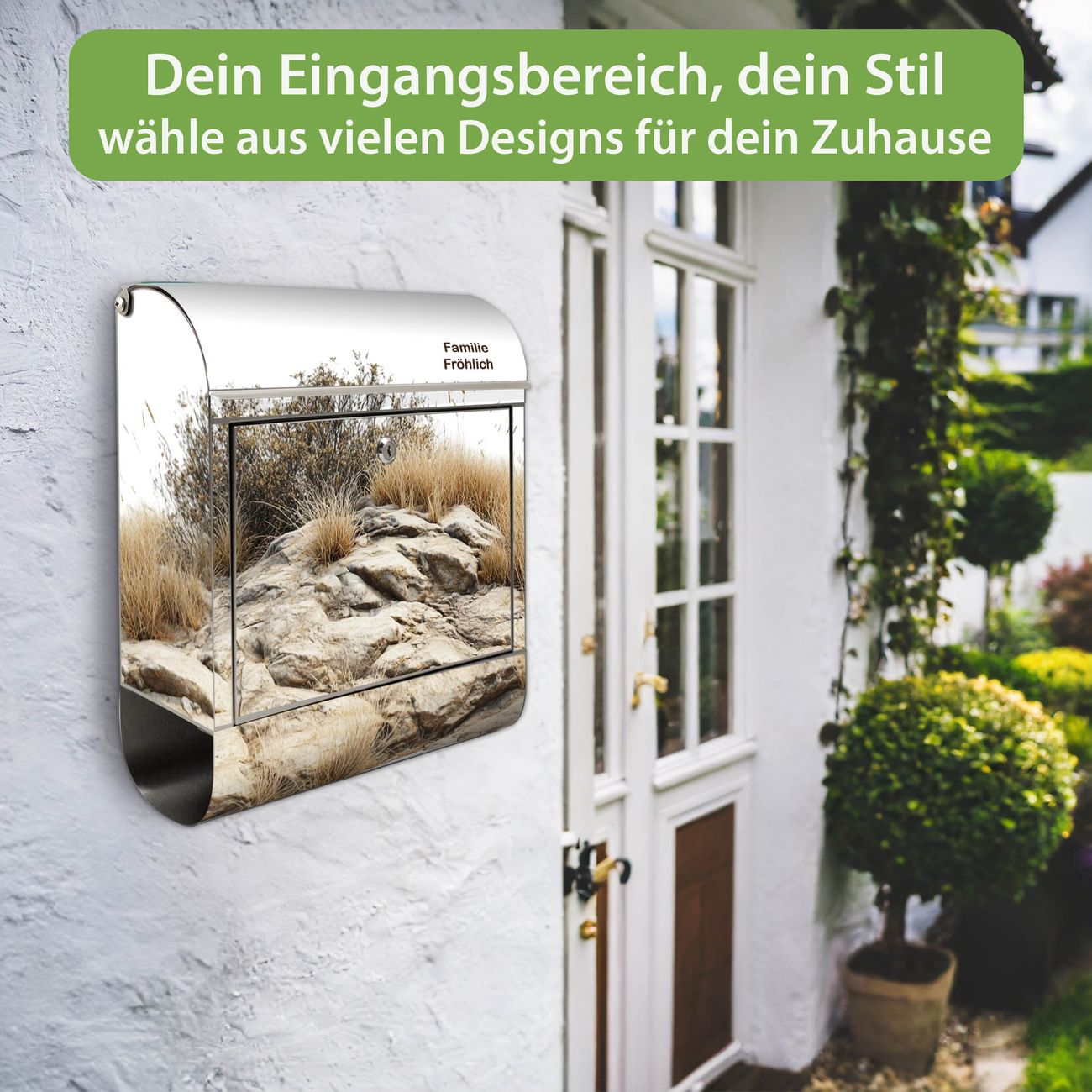 Wandbriefkasten Edelstahl Motiv Steinige Landschaft