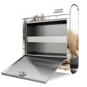 FUNKTION: Der banjado Edelstahl Briefkasten mit Motiv Motiv Steinige Landschaft bietet Ihnen mit seinem Fassungsvermögen genügend Platz auch für große A4 Sendungen. Das integrierte Zeitungsfach eignet sich hervorragend um unkompliziert die Tageszeitung zu fassen. Auf Wunsch können Sie bei uns den passenden Ständer kaufen und so aus dem Wandbriefkasten einen Standbriefkasten machen. DESIGN: Der Motivbriefkasten hat ein sehr ansprechendes und ausgefallenes Design, damit entlocken Sie Ihren Nachbarn und dem Postboten ein Lächeln. Heben Sie Sich ab von der tristen grauen Masse ohne auf Funktionalität zu verzichten. DETAILS: Der Design Briefkasten mit Motiv Motiv Steinige Landschaft besteht aus hochwertigem 18/0 Edelstahl. Das Motiv besteht aus einer wetter- und UV-resistenten Folie, die mit einem Schutzlaminat überzogen ist. Der Briefkasten wird mit Montagematerial und zwei Schlüsseln geliefert. NUTZEN: Sie können diesen Briefkasten sowohl als Wandbriefkasten montieren oder einen passenden Ständer auswählen und als Standbriefkasten einbetonieren. Die Größe bietet genügend Platz für Sendungen aller Art, das hochwertige Edelstahl ist rostfrei und die Motivfolie absolut wetterfest. SCHUTZ: Um Ihre Post optimal vor Witterungseinflüssen wie Starkregen zu schützen, empfehlen wir, den Briefkasten geschützt anzubringen. BANJADO: Ihr Briefkasten wird in Sachsen in einer kleinen Manufaktur von Hand veredelt. Die Motivfolie ist lösungsmittelfrei und schutzlaminiert, dies sorgt für einen langen Halt. Wir legen großen Wert auf die Verbindung von Funktionalität und Design. Sie erhalten Handarbeit aus Sachsen.