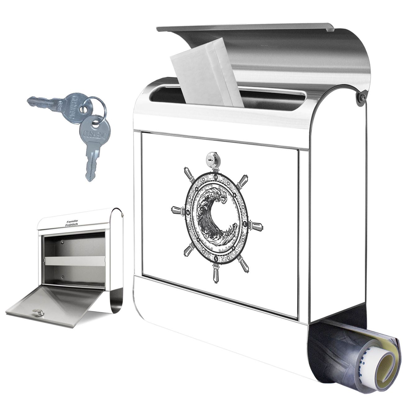 Wandbriefkasten Edelstahl Motiv Steuerrad 2