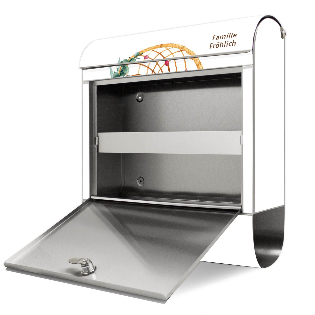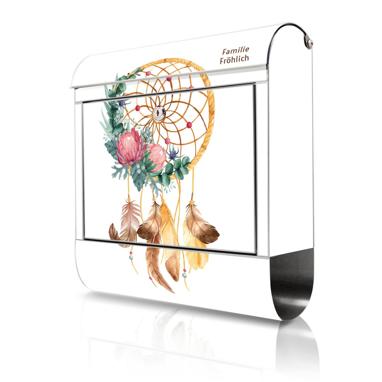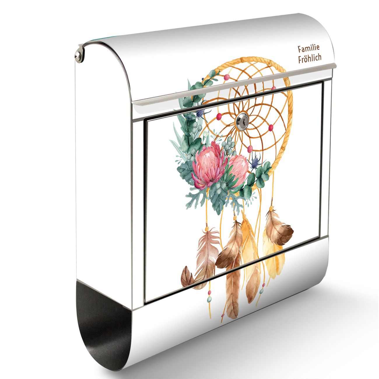 Wandbriefkasten Edelstahl Motiv Traumfänger Federn und Blumen