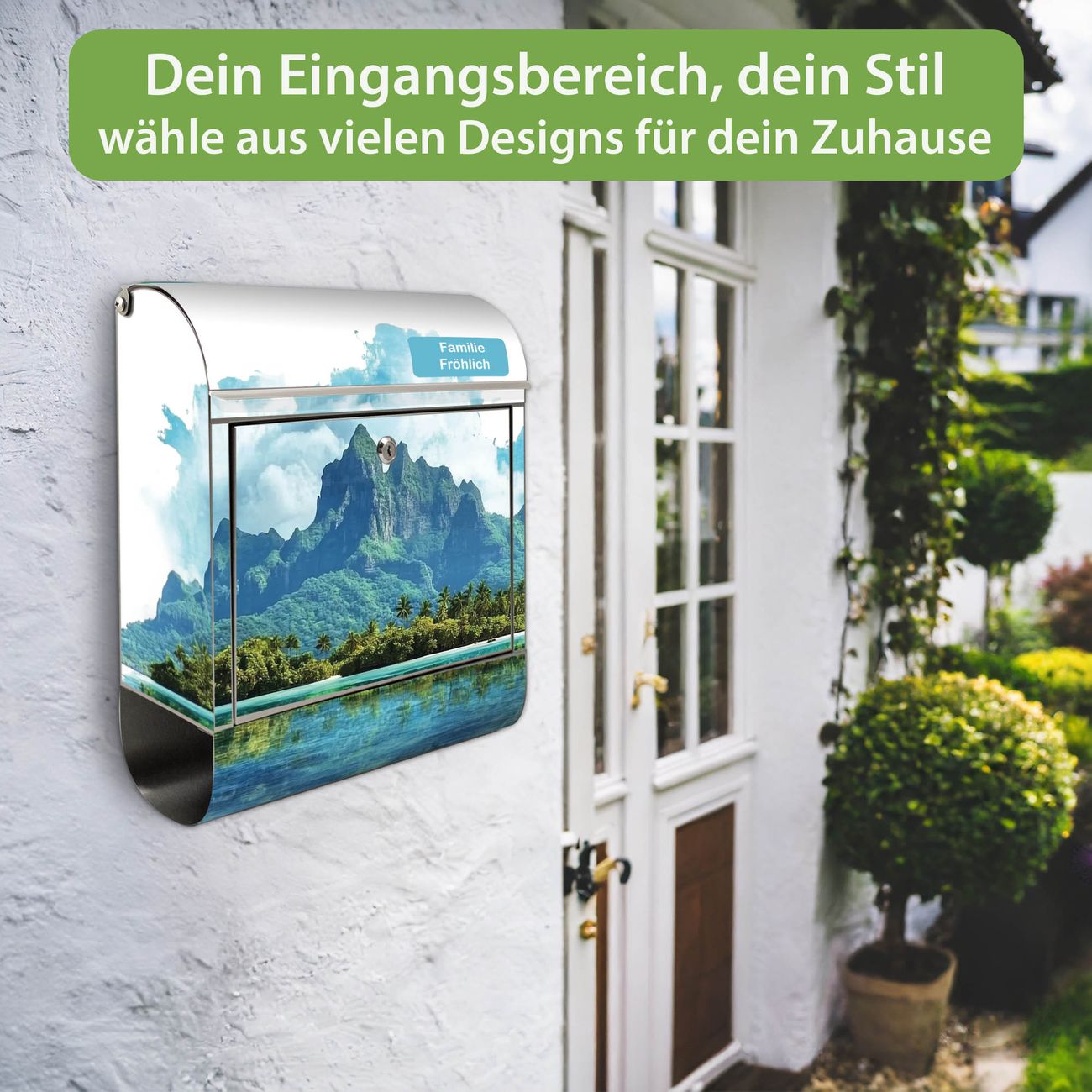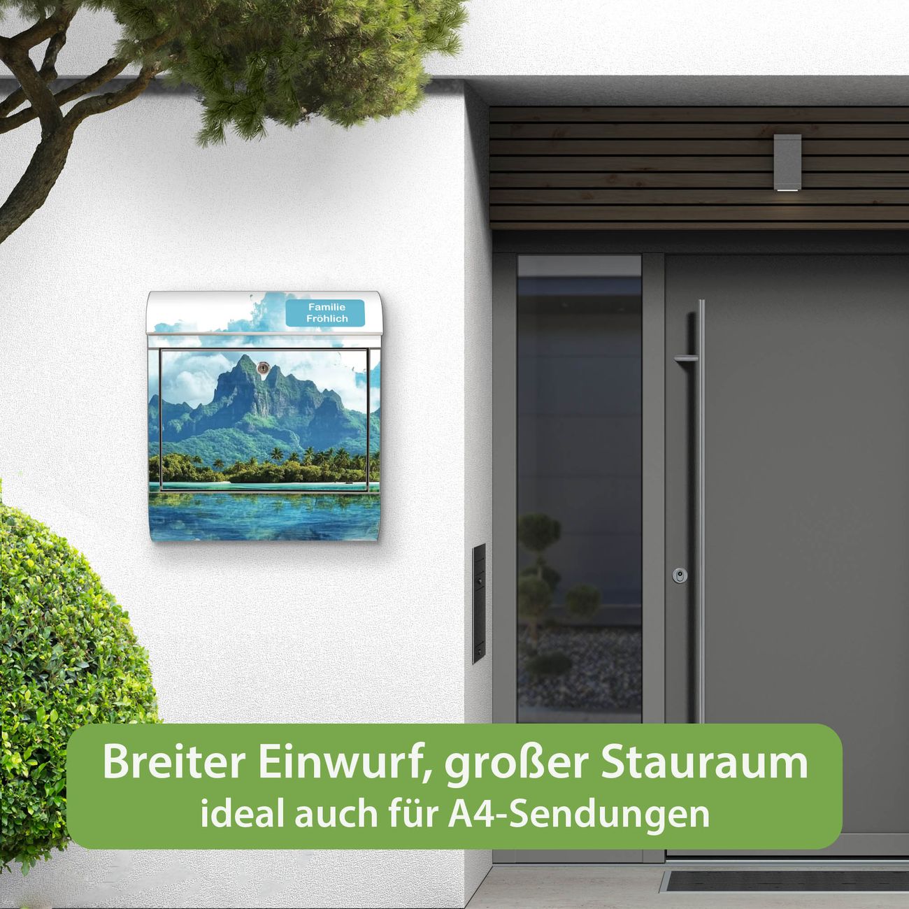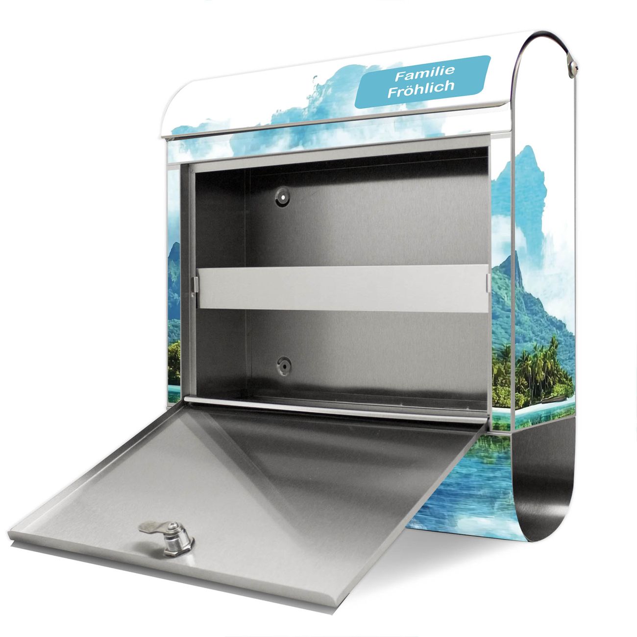 Wandbriefkasten Edelstahl Motiv Tropenparadies