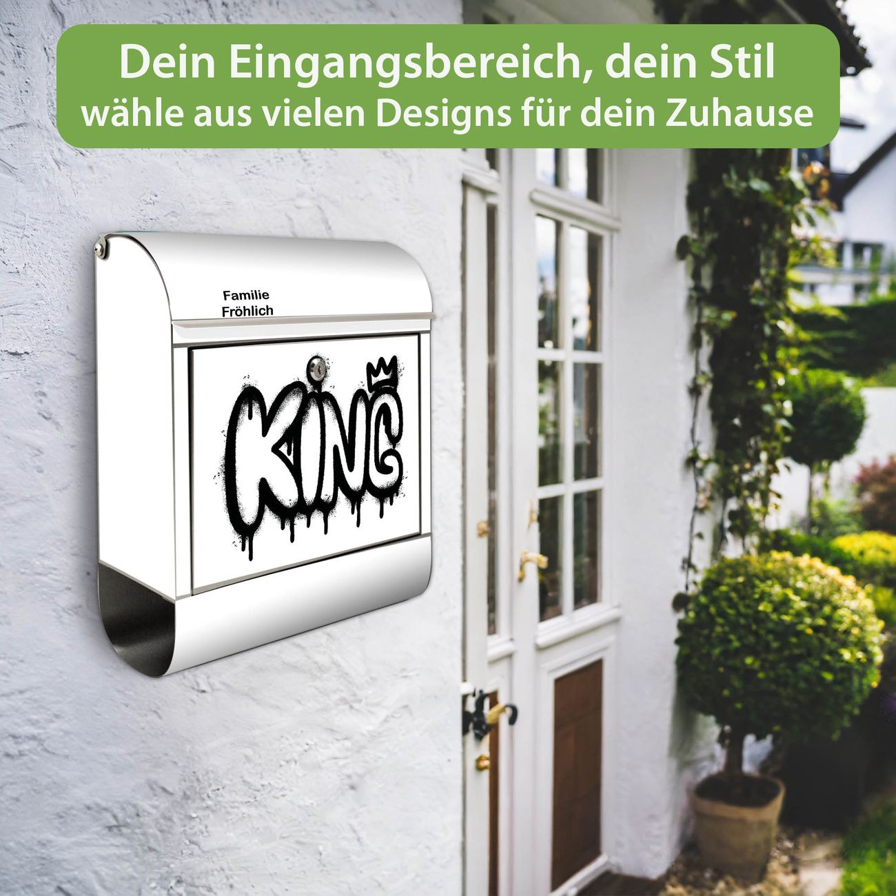 Wandbriefkasten Edelstahl Motiv Urban King Graffiti