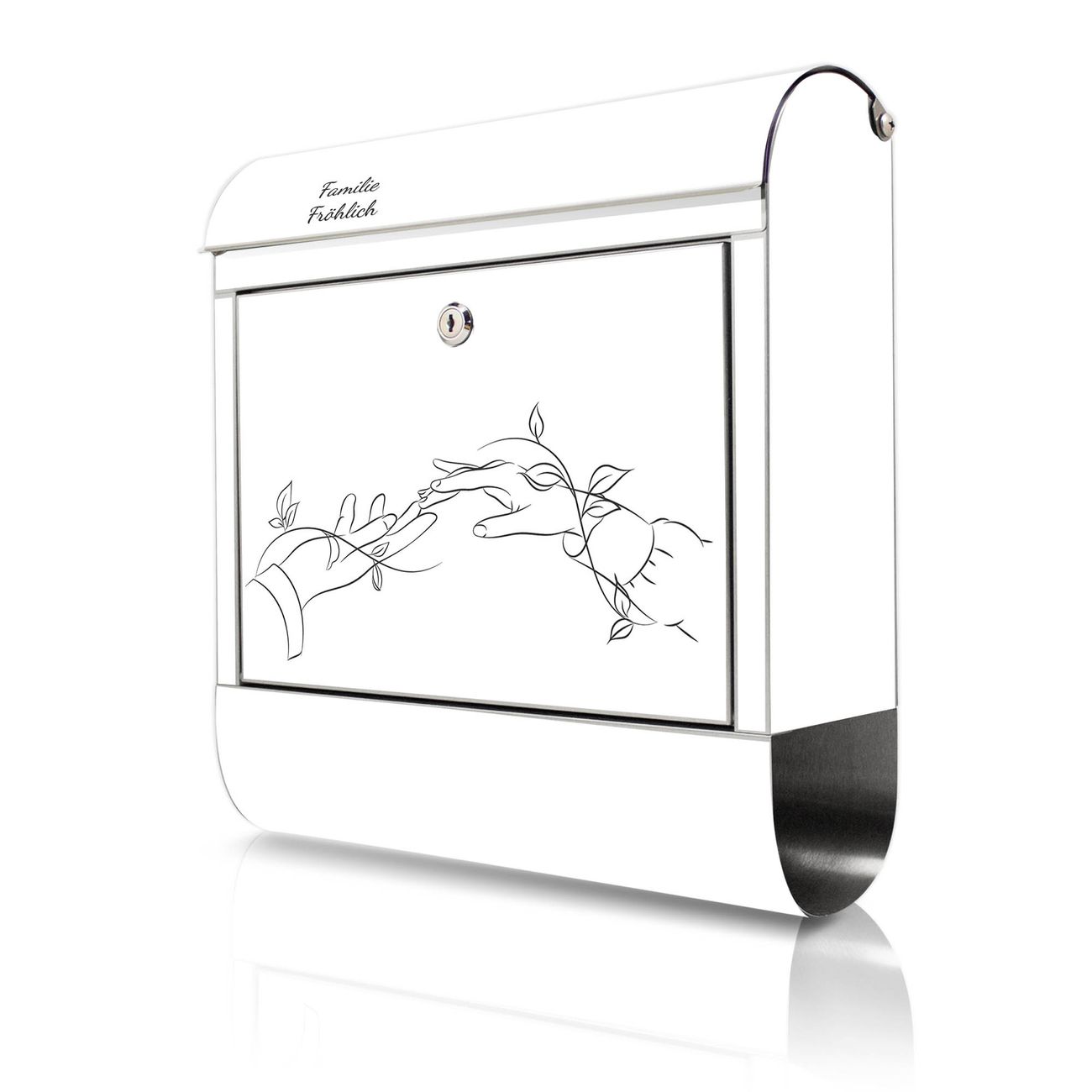 Wandbriefkasten Edelstahl Motiv Verbindende Hände Lineart