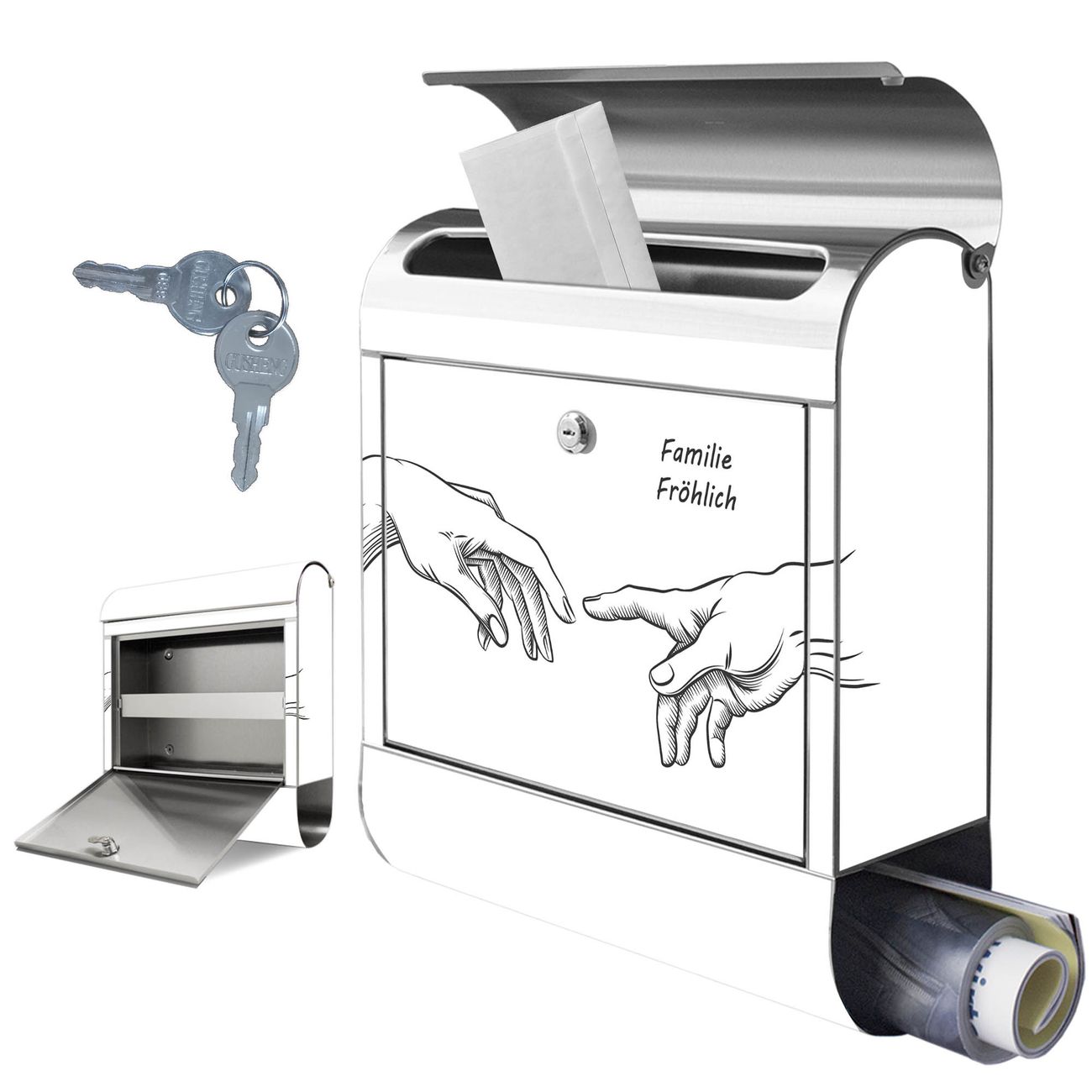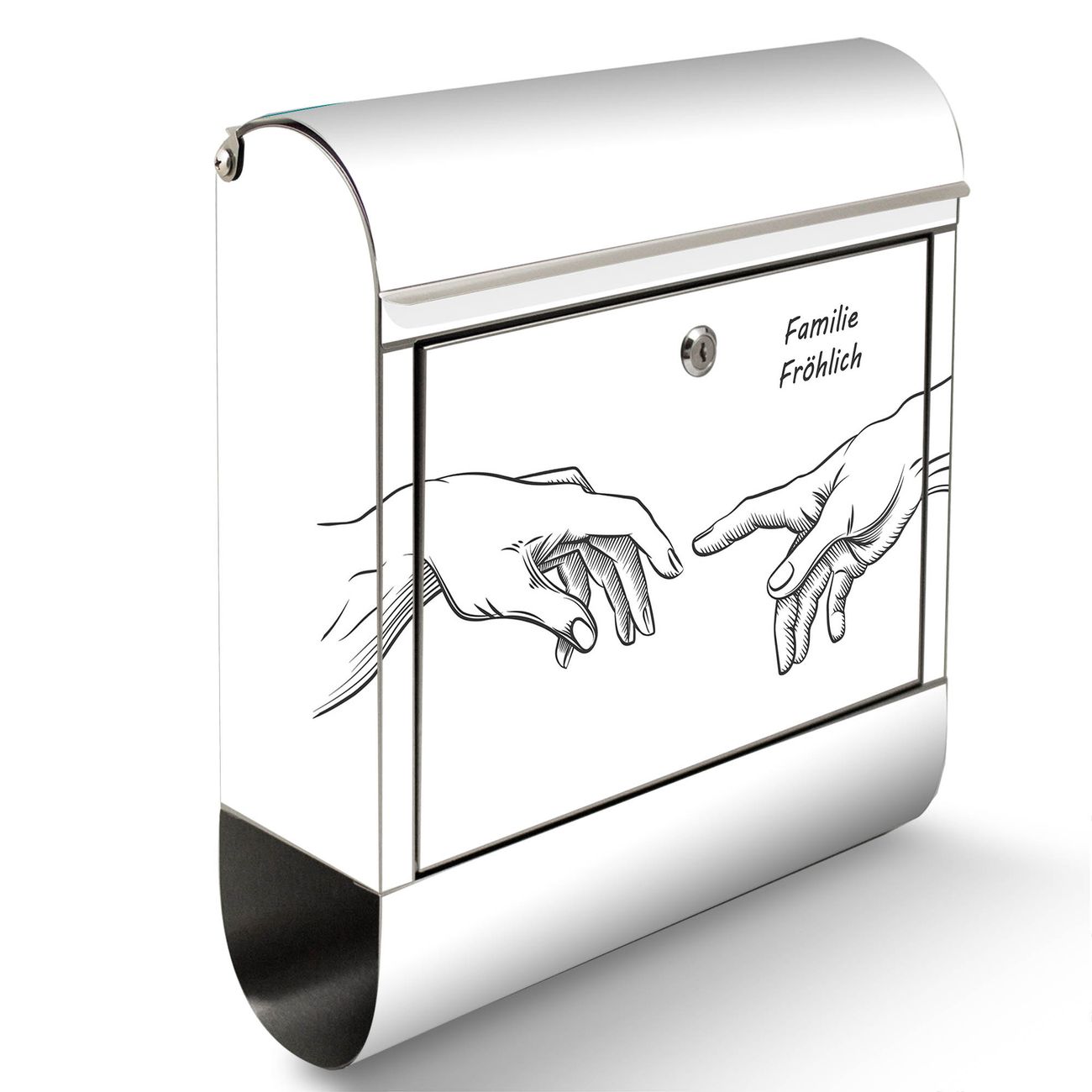 Wandbriefkasten Edelstahl Motiv Verbindung der Hände