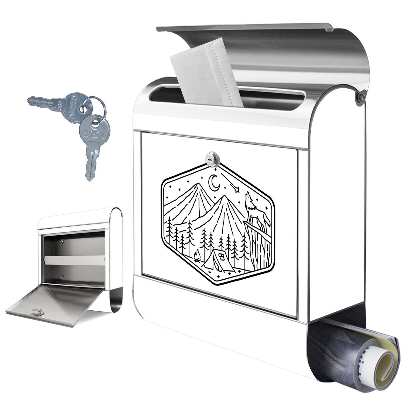 Wandbriefkasten Edelstahl Motiv Vignette Landschaft