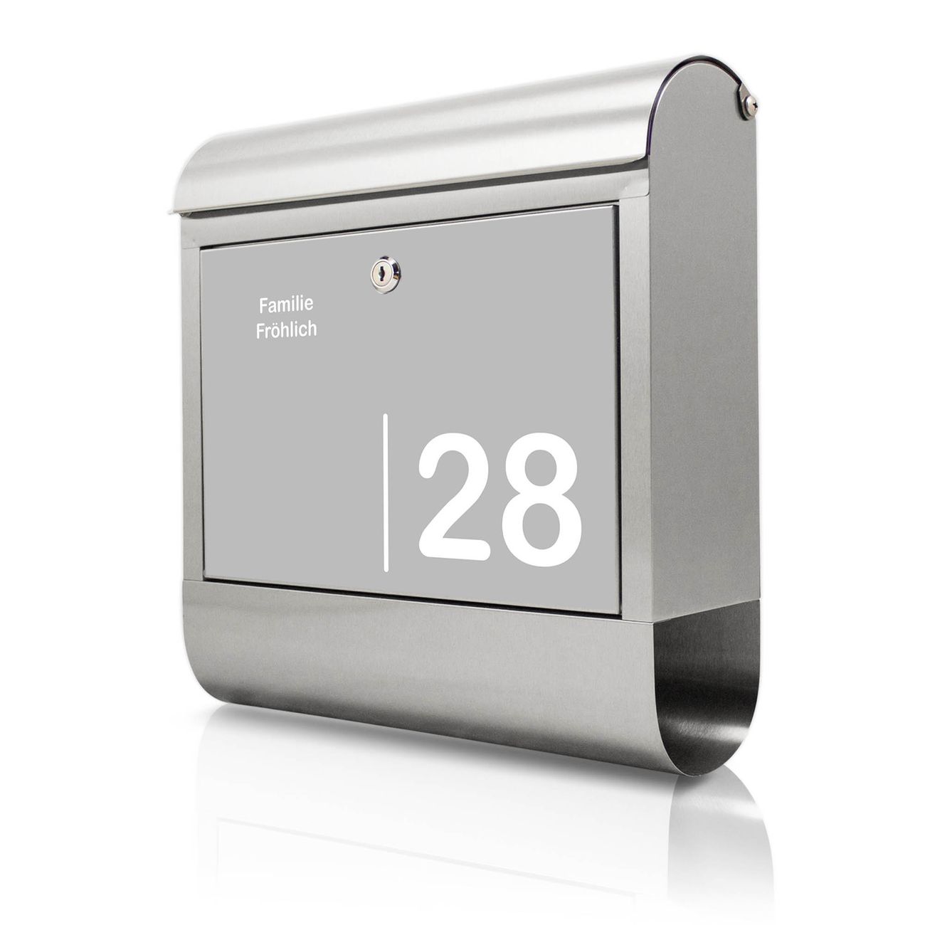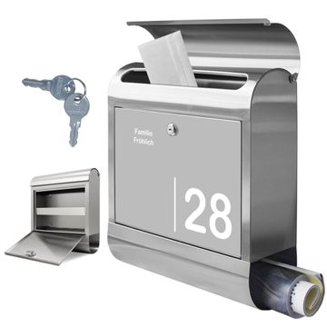 Wandbriefkasten Edelstahl Motiv Weiß auf Grau 2
