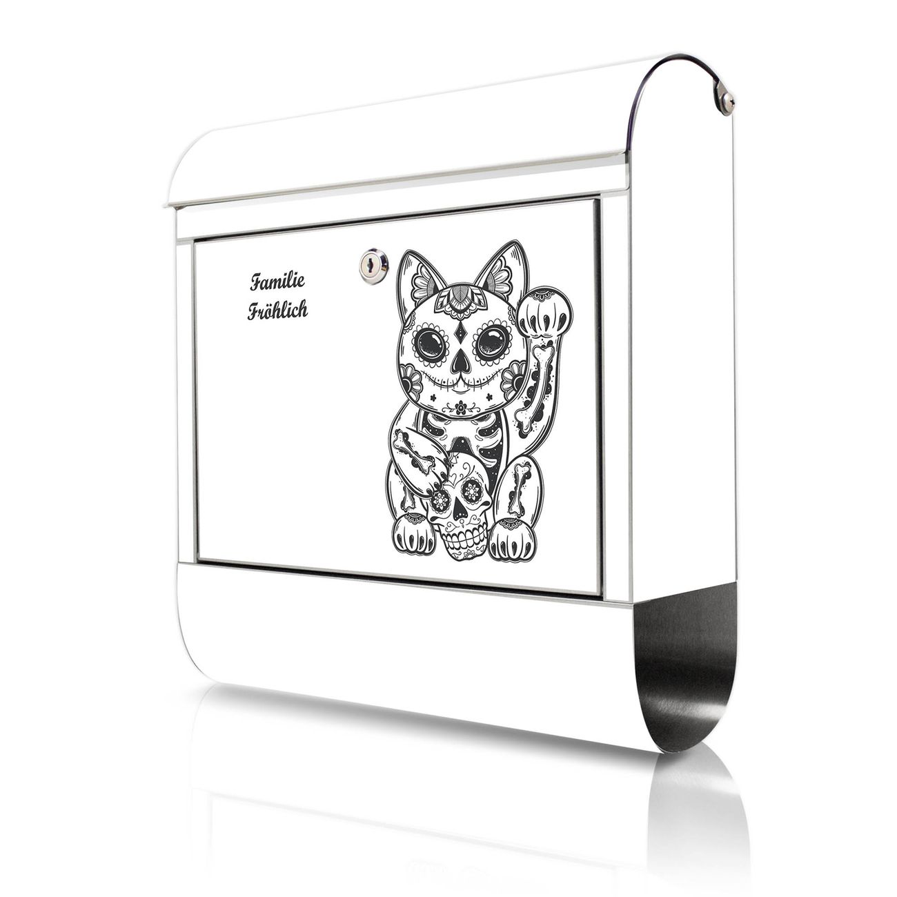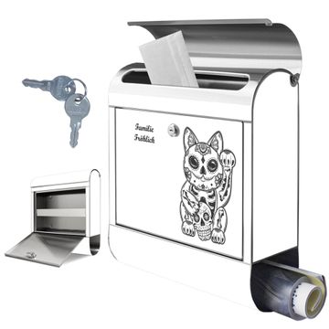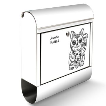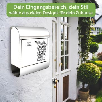 Wandbriefkasten Edelstahl Motiv Winkekatze 2