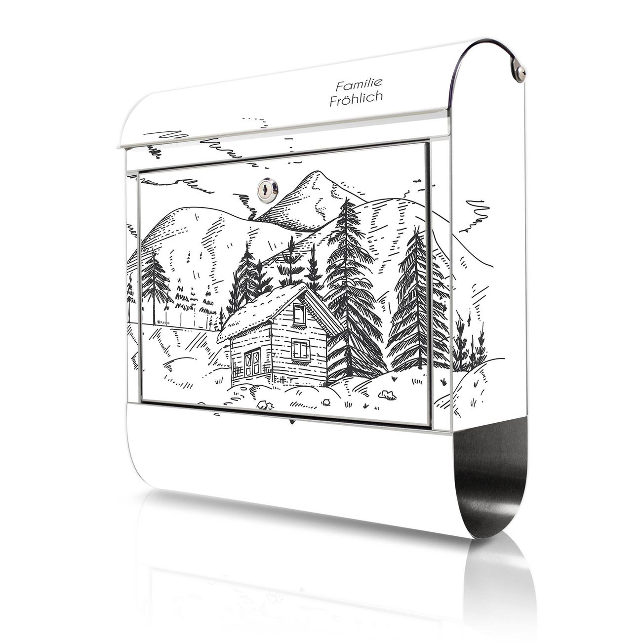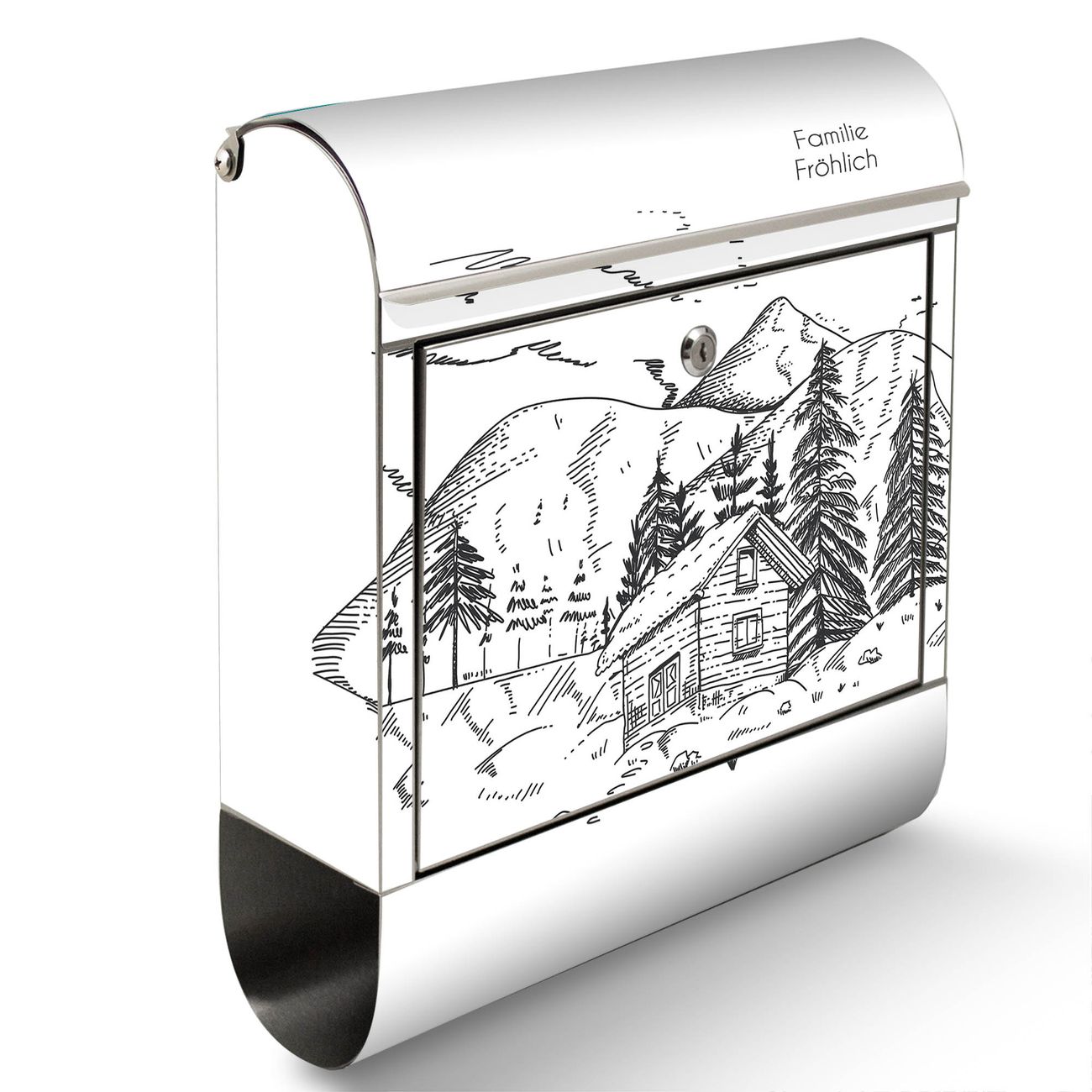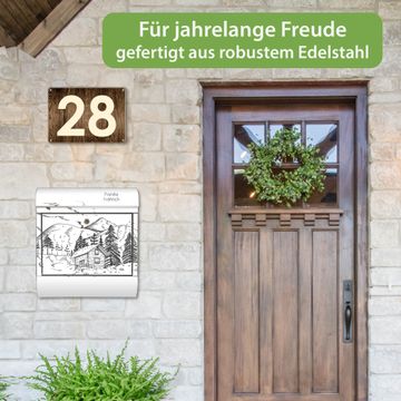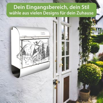 Wandbriefkasten Edelstahl Motiv Winterliche Berghüttenidylle