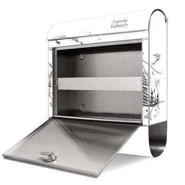 FUNKTION: Der banjado Edelstahl Briefkasten mit Motiv Motiv Winterliche Berghüttenidylle bietet Ihnen mit seinem Fassungsvermögen genügend Platz auch für große A4 Sendungen. Das integrierte Zeitungsfach eignet sich hervorragend um unkompliziert die Tageszeitung zu fassen. Auf Wunsch können Sie bei uns den passenden Ständer kaufen und so aus dem Wandbriefkasten einen Standbriefkasten machen. DESIGN: Der Motivbriefkasten hat ein sehr ansprechendes und ausgefallenes Design, damit entlocken Sie Ihren Nachbarn und dem Postboten ein Lächeln. Heben Sie Sich ab von der tristen grauen Masse ohne auf Funktionalität zu verzichten. DETAILS: Der Design Briefkasten mit Motiv Motiv Winterliche Berghüttenidylle besteht aus hochwertigem 18/0 Edelstahl. Das Motiv besteht aus einer wetter- und UV-resistenten Folie, die mit einem Schutzlaminat überzogen ist. Der Briefkasten wird mit Montagematerial und zwei Schlüsseln geliefert. NUTZEN: Sie können diesen Briefkasten sowohl als Wandbriefkasten montieren oder einen passenden Ständer auswählen und als Standbriefkasten einbetonieren. Die Größe bietet genügend Platz für Sendungen aller Art, das hochwertige Edelstahl ist rostfrei und die Motivfolie absolut wetterfest. SCHUTZ: Um Ihre Post optimal vor Witterungseinflüssen wie Starkregen zu schützen, empfehlen wir, den Briefkasten geschützt anzubringen. BANJADO: Ihr Briefkasten wird in Sachsen in einer kleinen Manufaktur von Hand veredelt. Die Motivfolie ist lösungsmittelfrei und schutzlaminiert, dies sorgt für einen langen Halt. Wir legen großen Wert auf die Verbindung von Funktionalität und Design. Sie erhalten Handarbeit aus Sachsen.