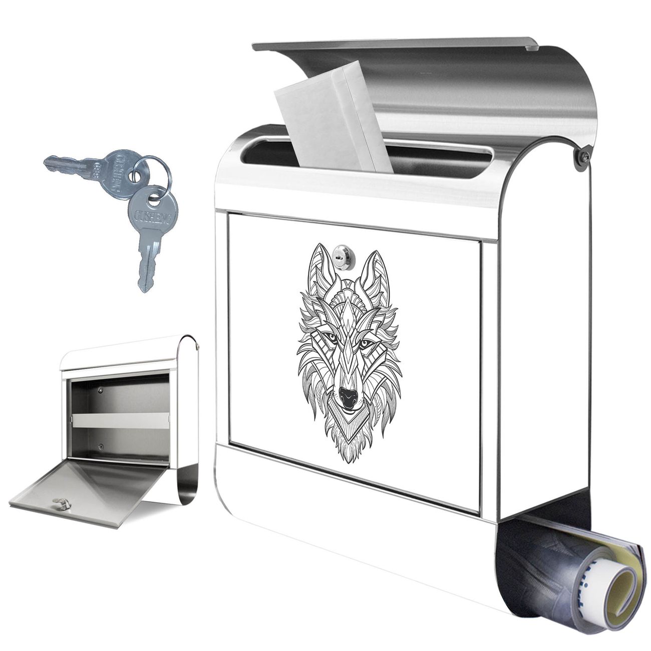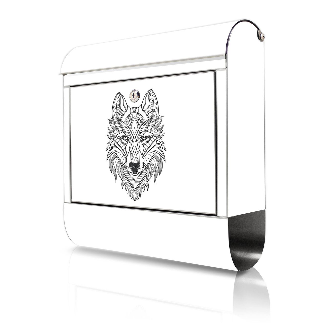 Wandbriefkasten Edelstahl Motiv Wolf 2