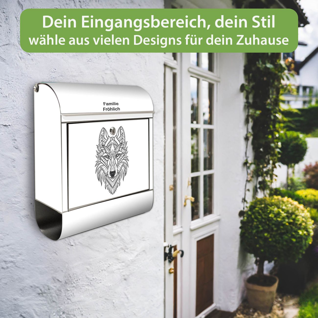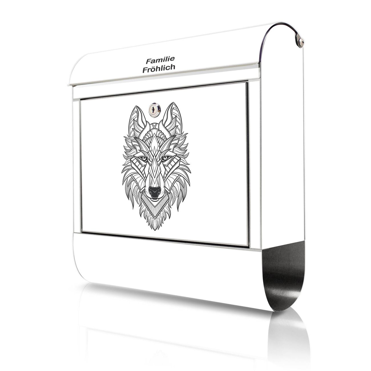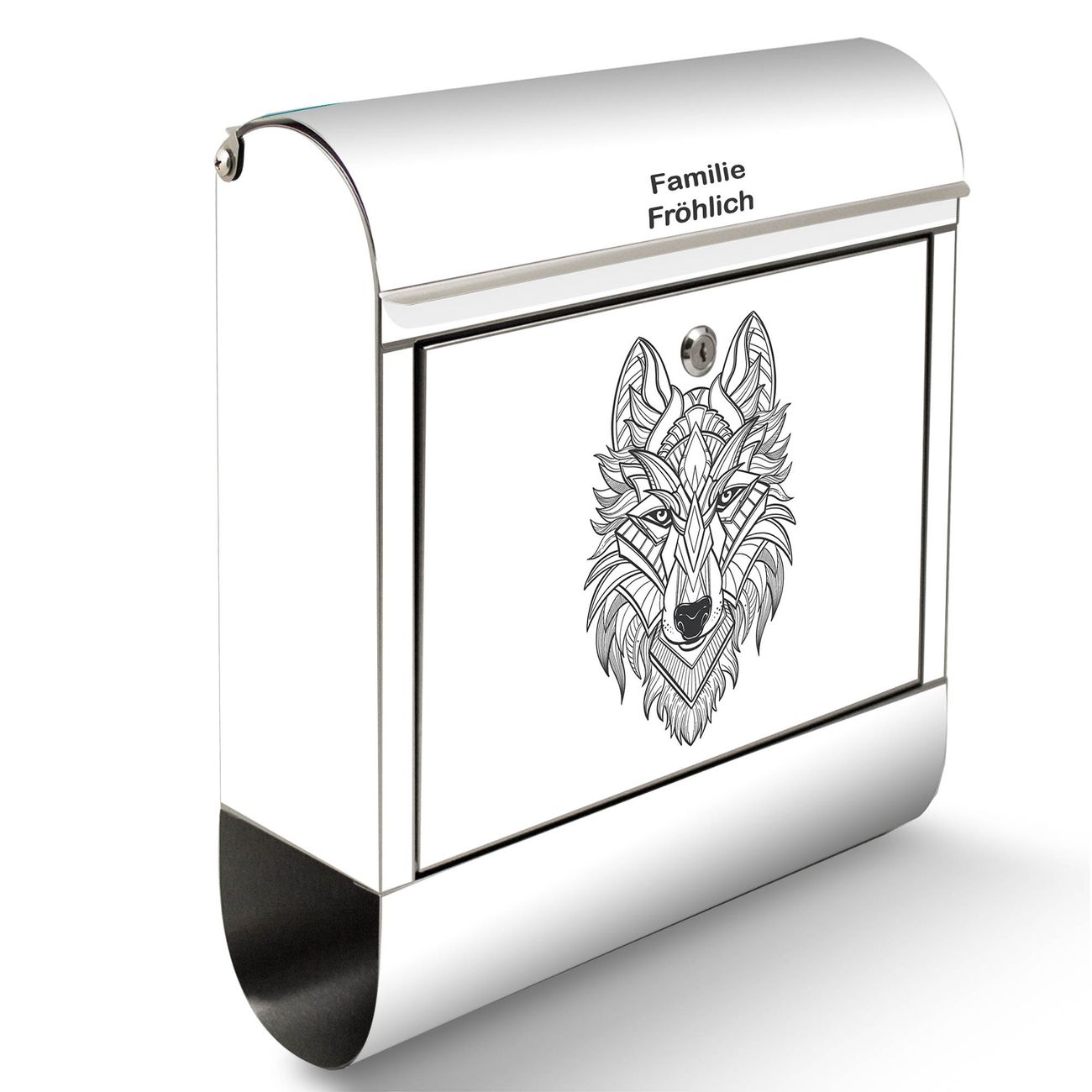 Wandbriefkasten Edelstahl Motiv Wolf 2