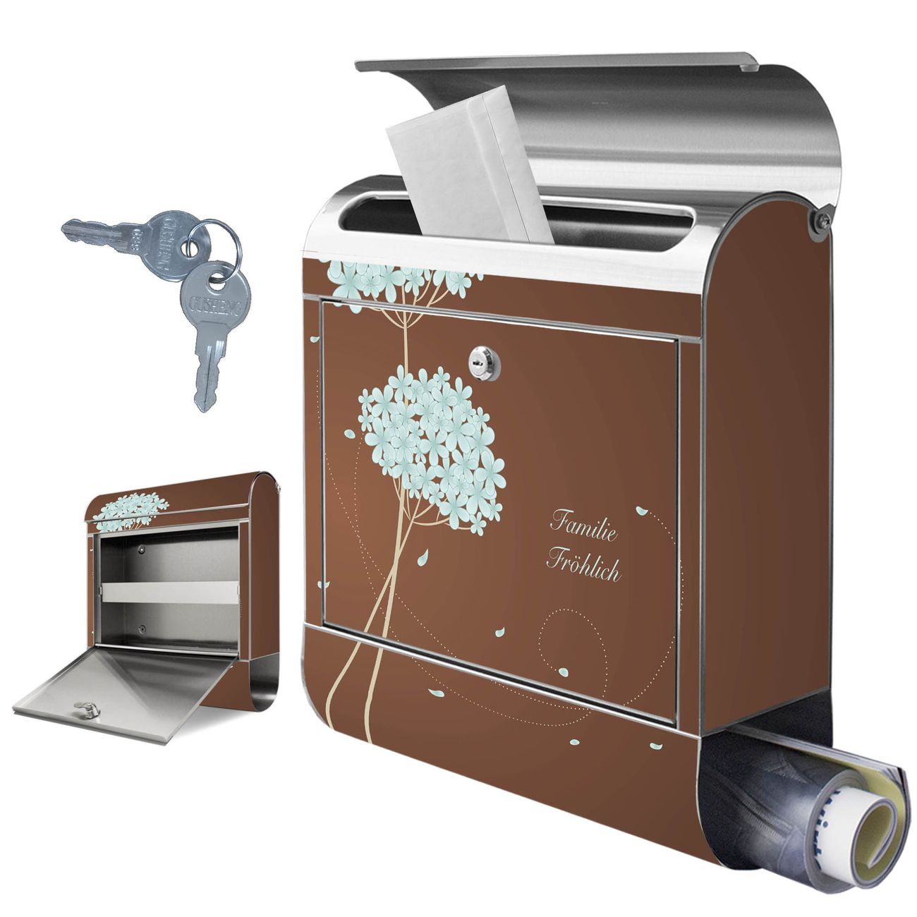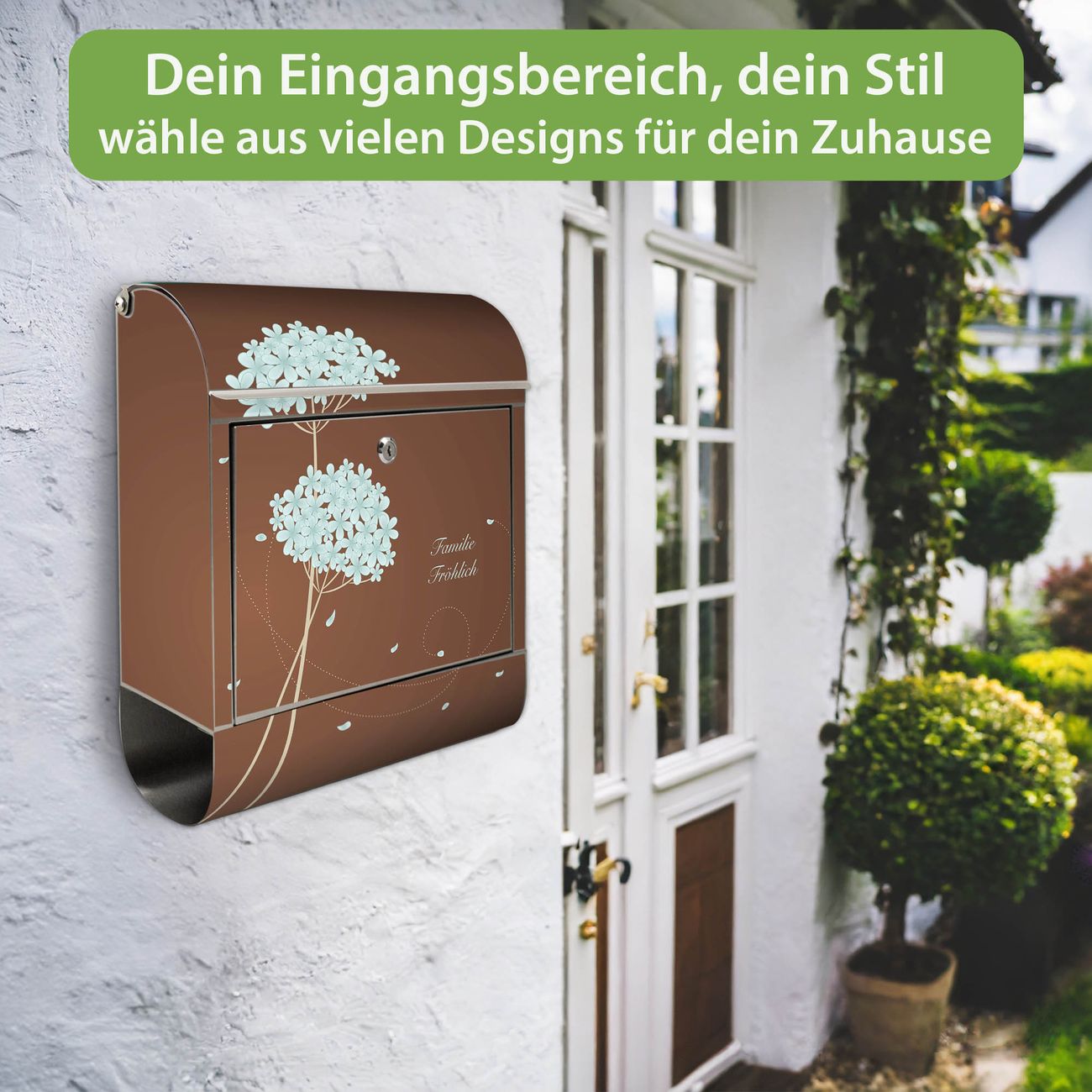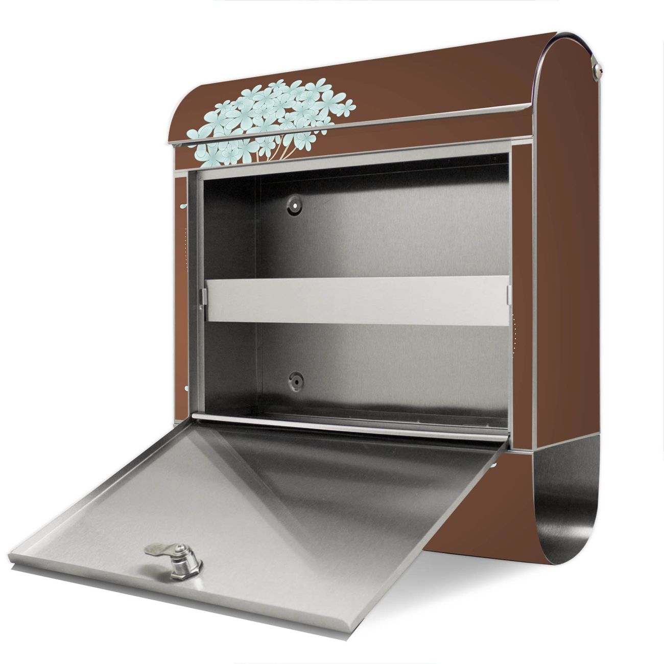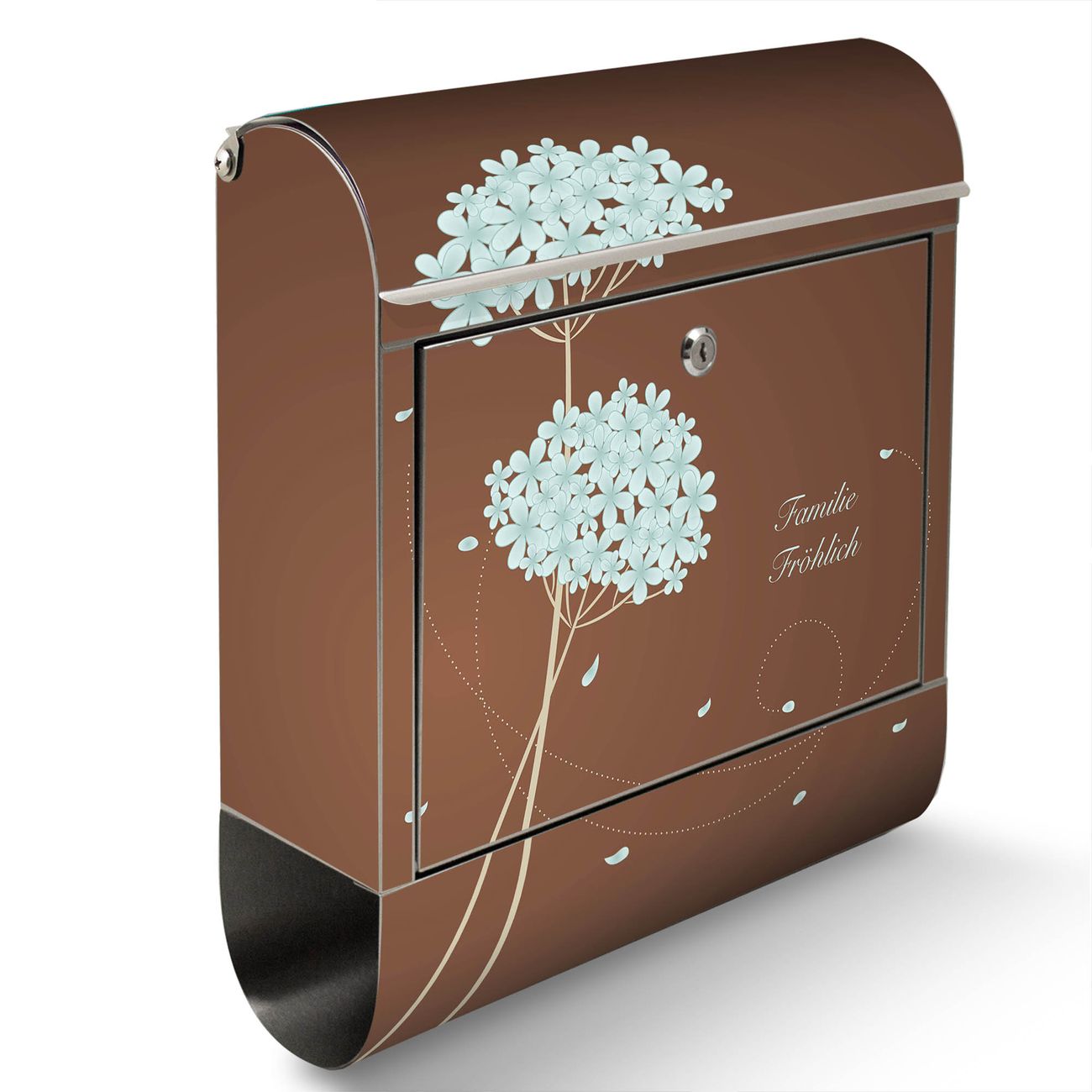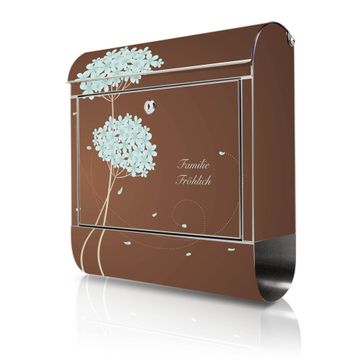 Wandbriefkasten Edelstahl Motiv WT Blaue Hortensie