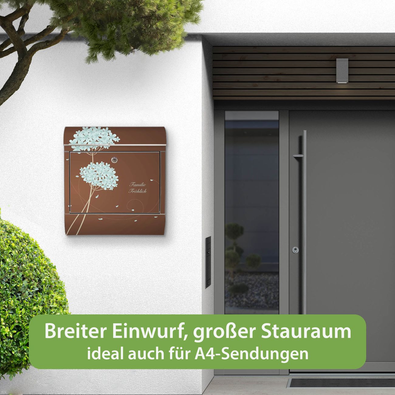 Der Vorschau-Text Familie Fröhlich wird durch Ihren persönlichen Wunschtext ersetzt. Die Schriftart und Farbe bleiben gleich wie in der Vorschau.