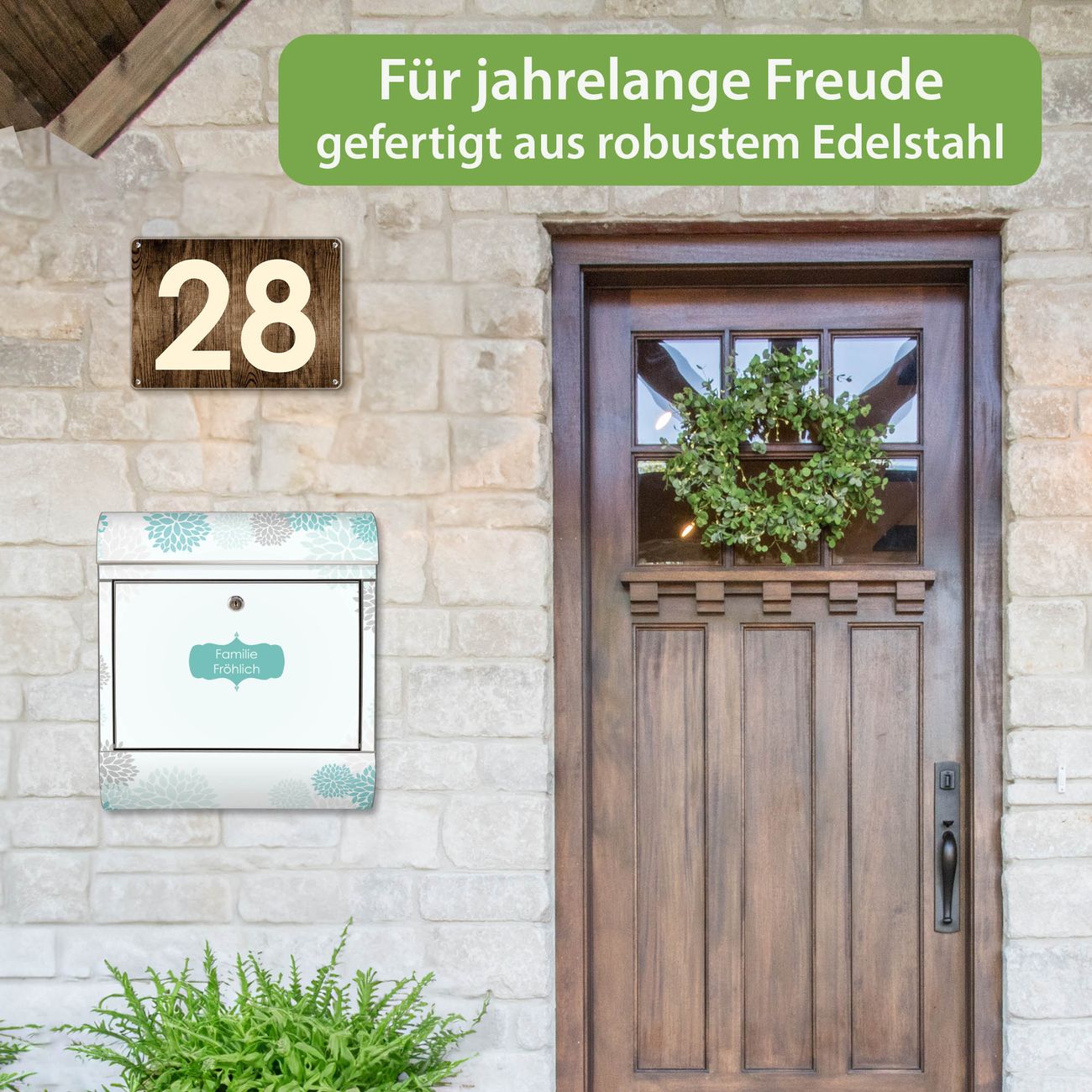 Der Vorschau-Text Familie Fröhlich wird durch Ihren persönlichen Wunschtext ersetzt. Die Schriftart und Farbe bleiben gleich wie in der Vorschau.