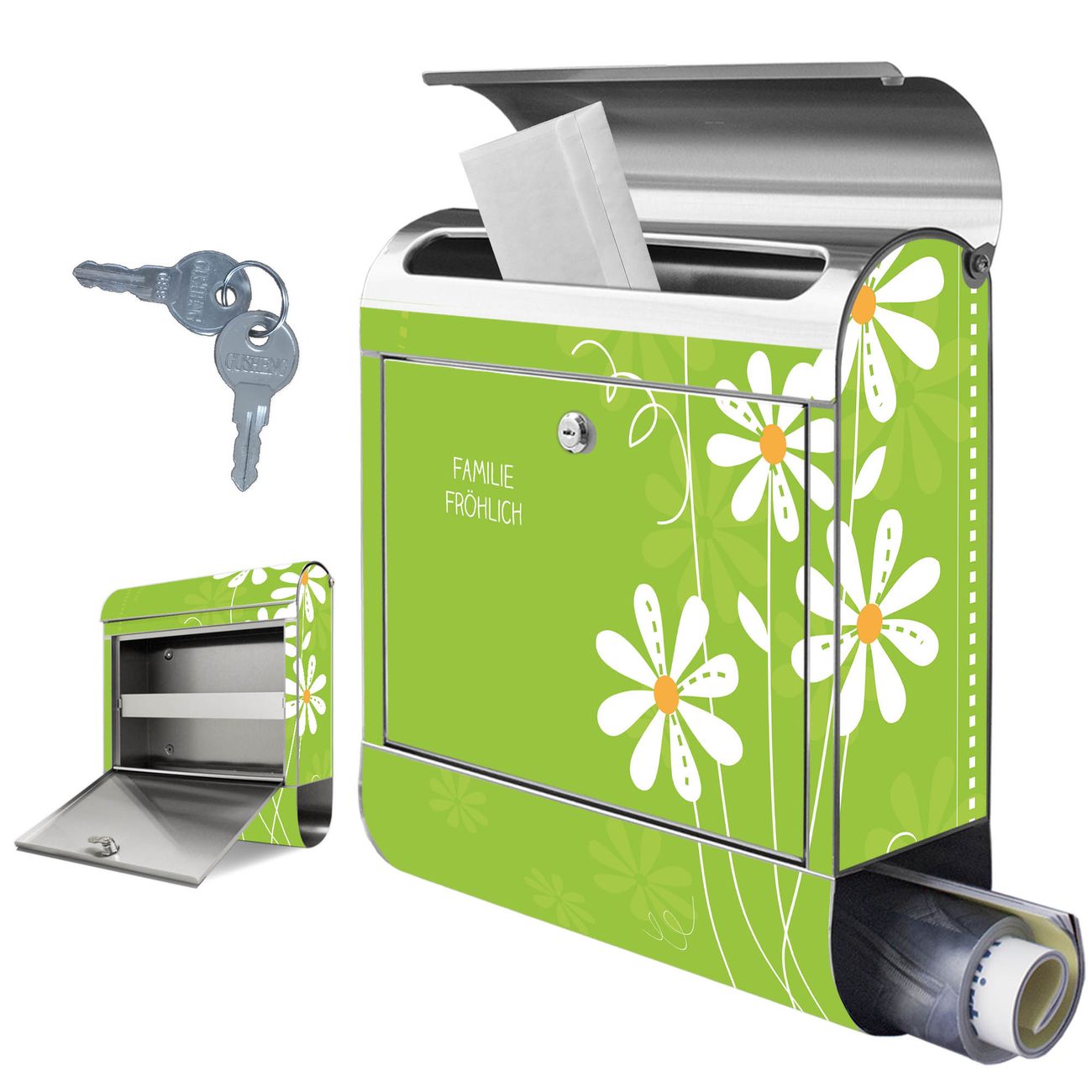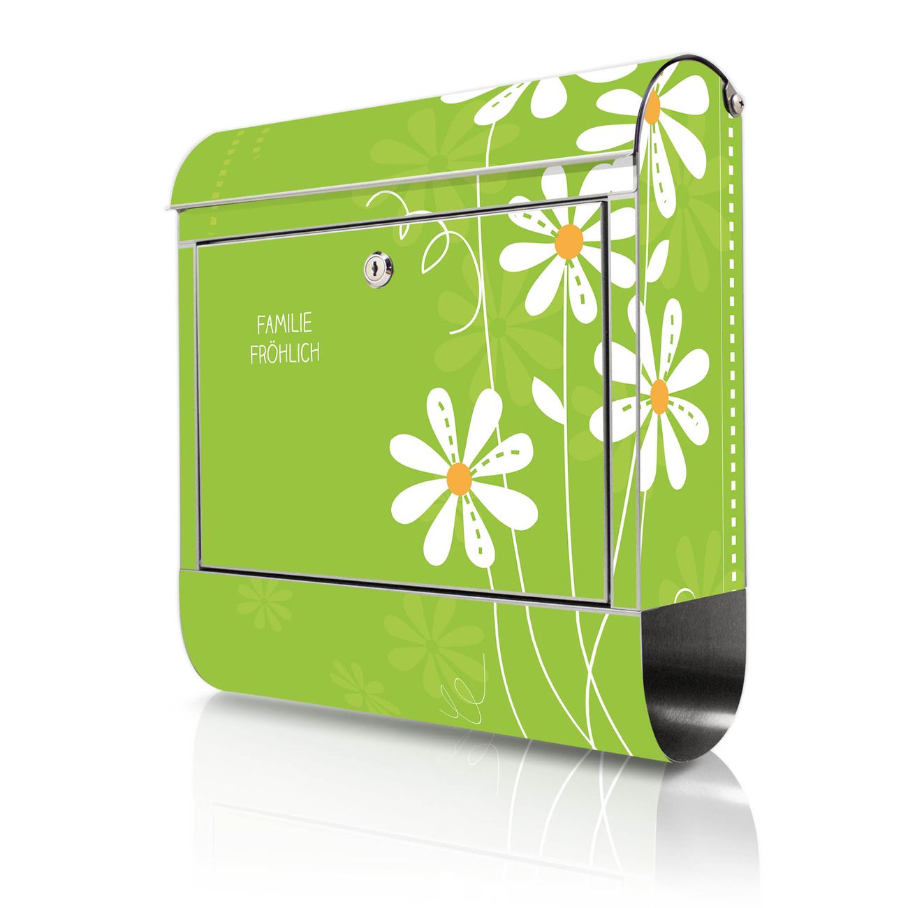 Wandbriefkasten Edelstahl Motiv WT Gänseblümchen