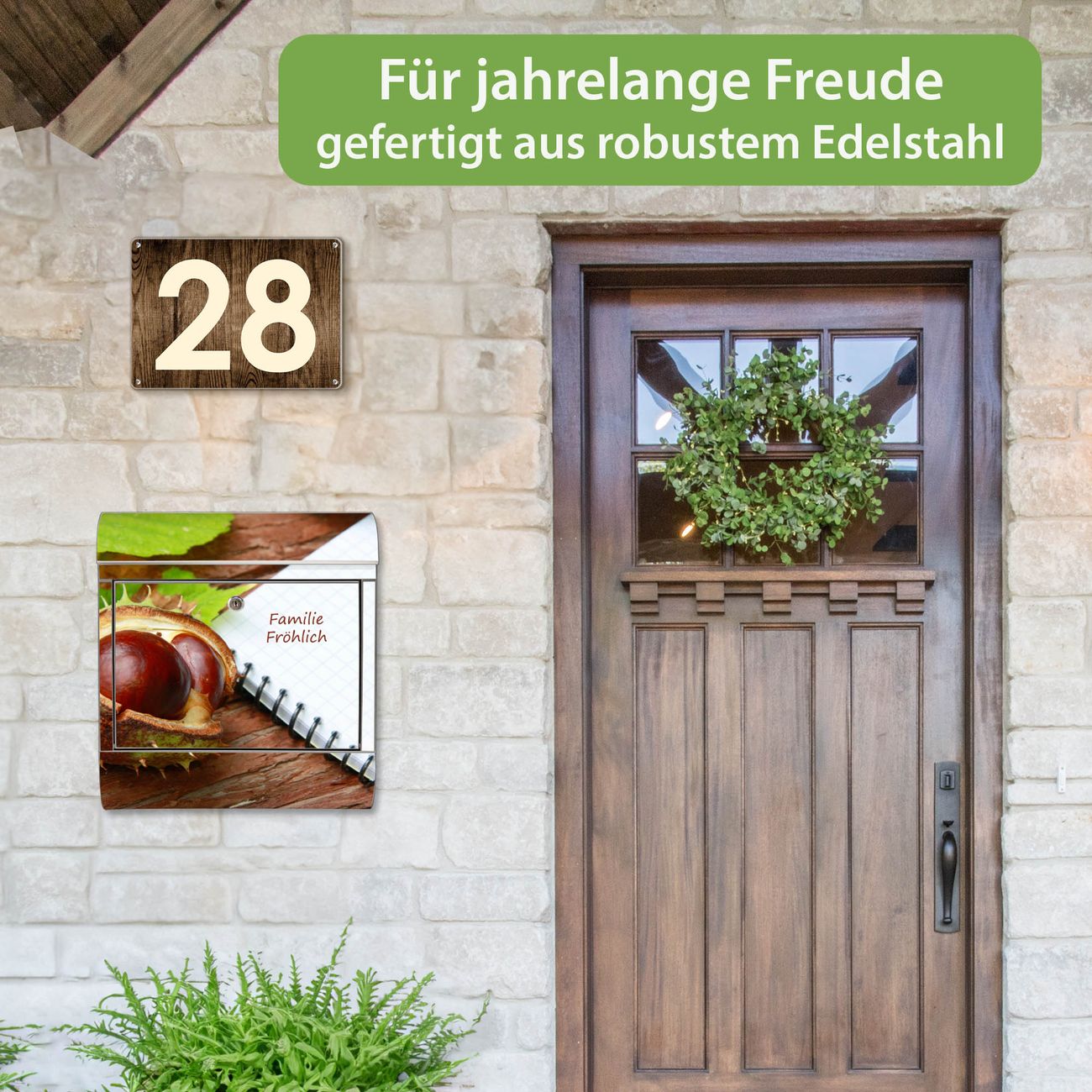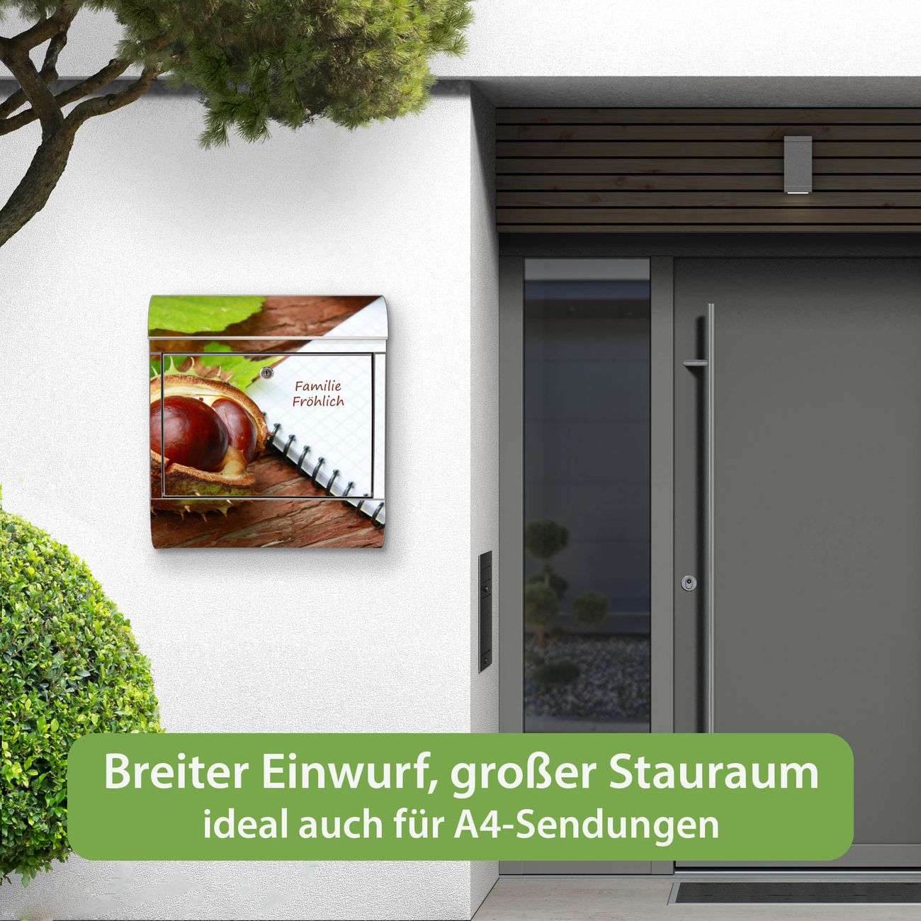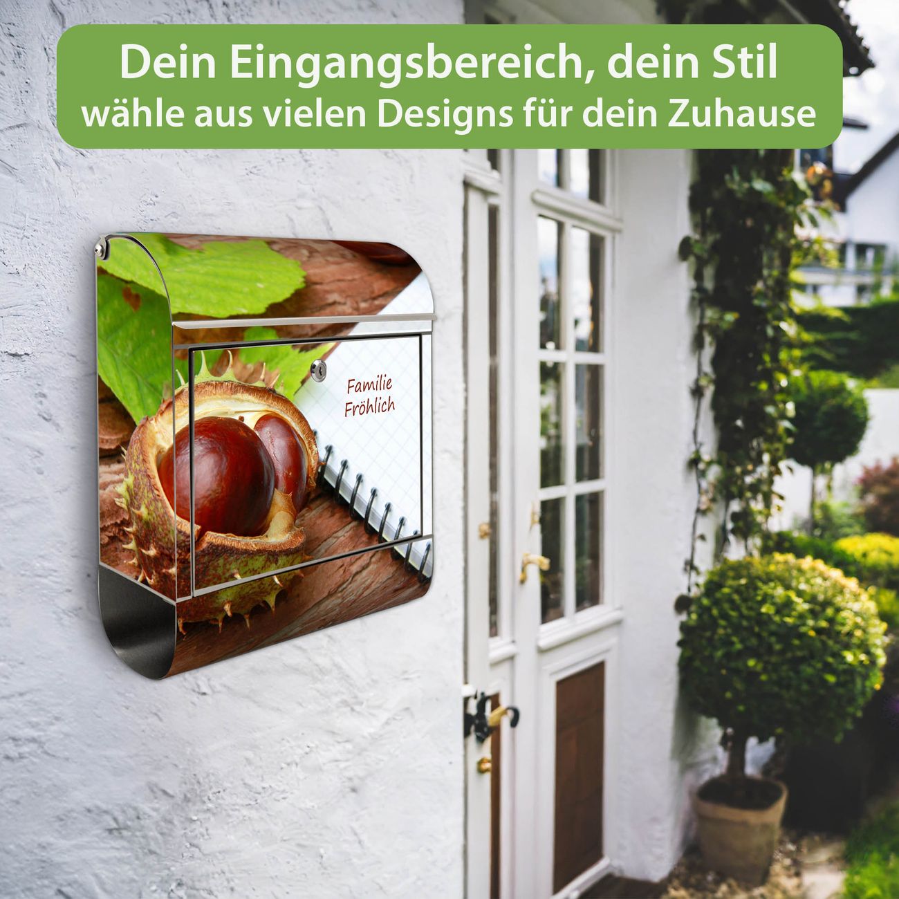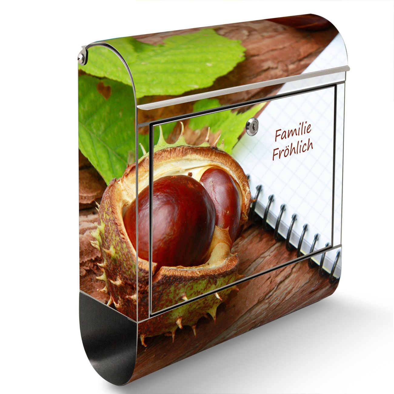 Wandbriefkasten Edelstahl Motiv WT Kastanie