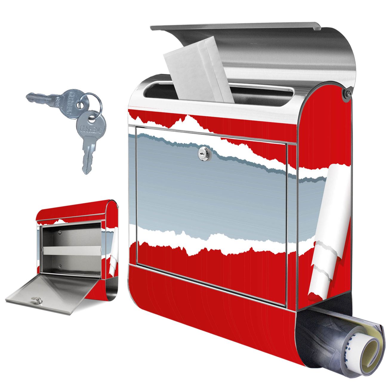 Wandbriefkasten Edelstahl Motiv WT Zerrissenes Papier