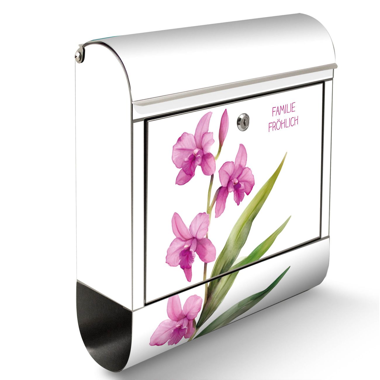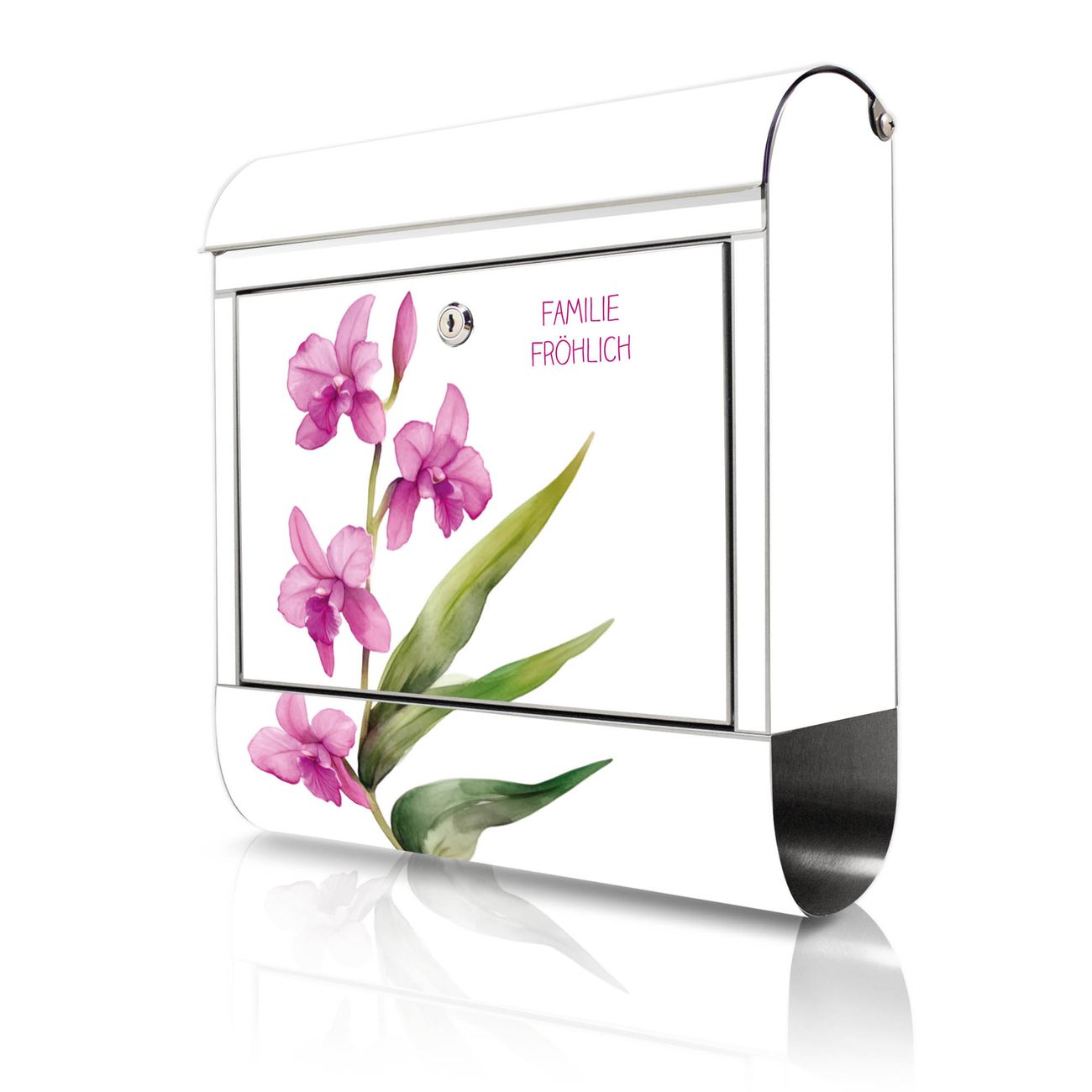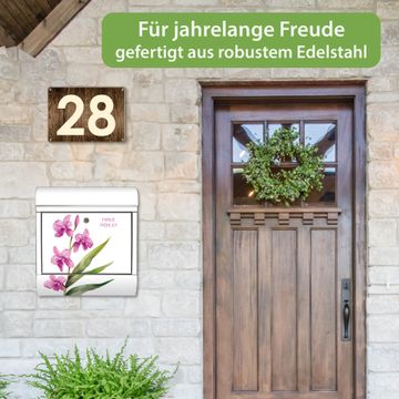 Wandbriefkasten Edelstahl Motiv Zarte Orchidee