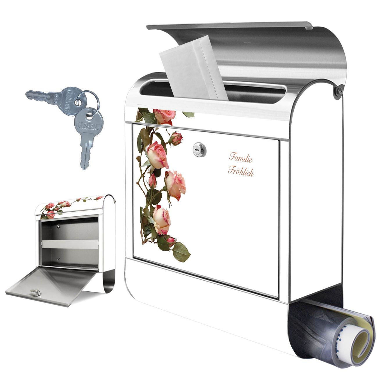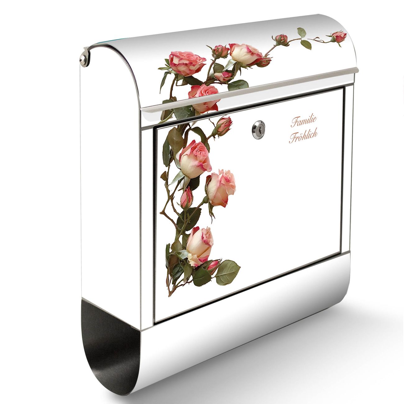 Wandbriefkasten Edelstahl Motiv Zarte Rosenranken