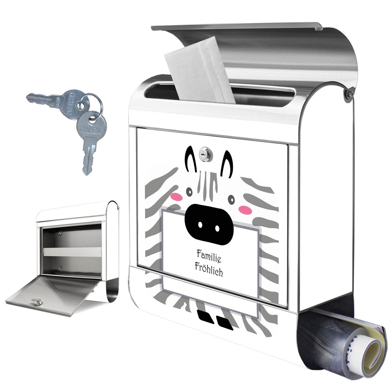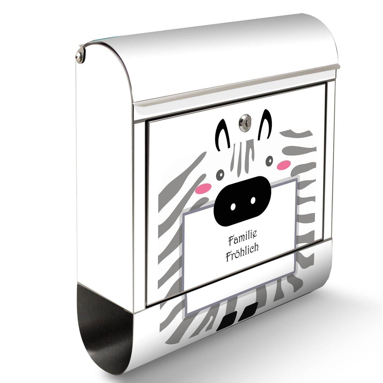 Wandbriefkasten Edelstahl Motiv Zebra Bilderrahmen