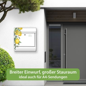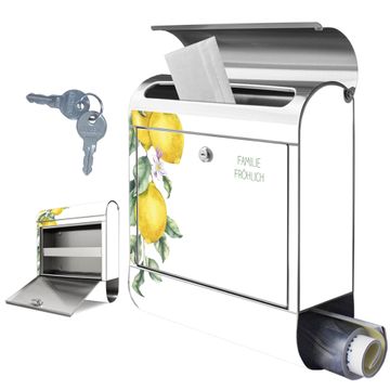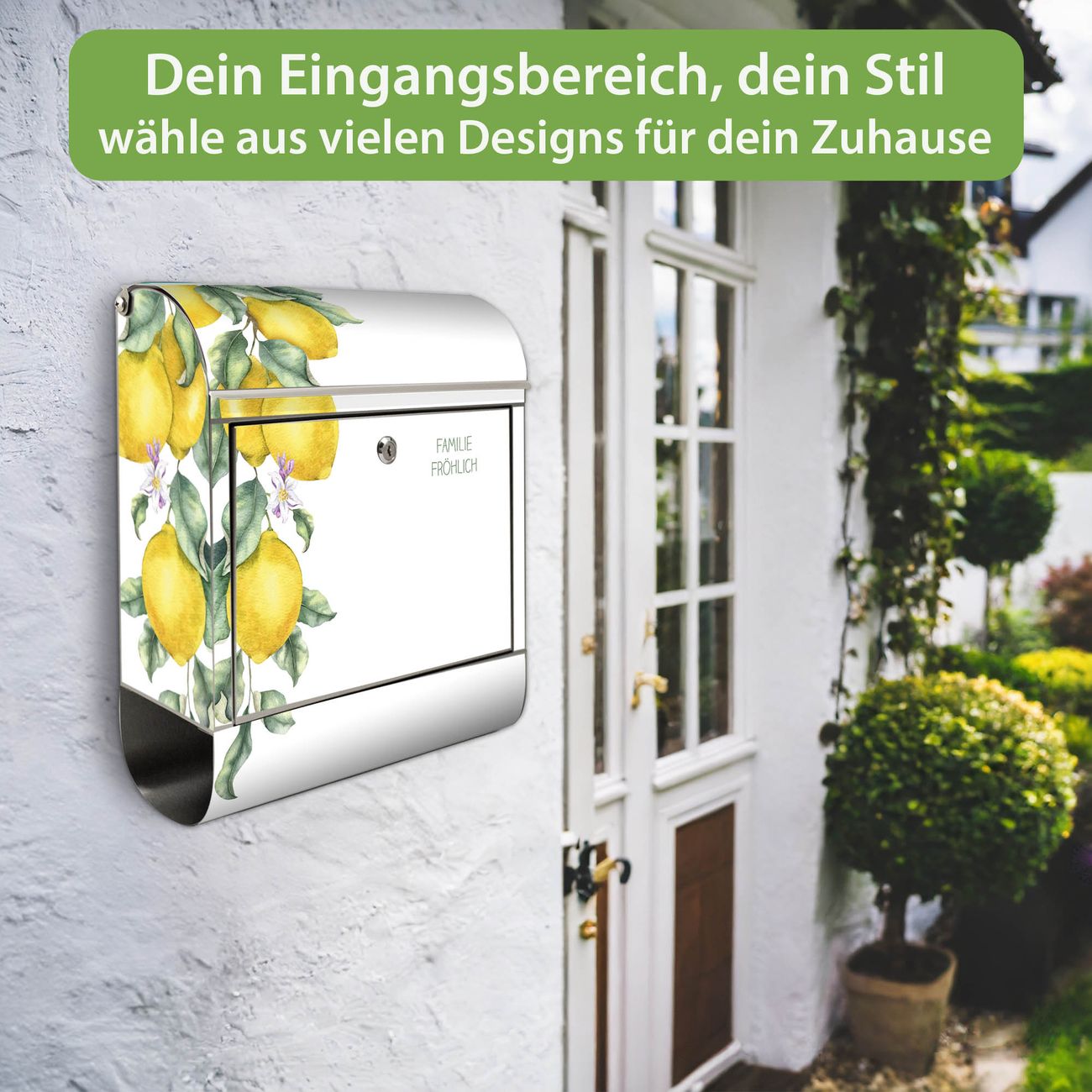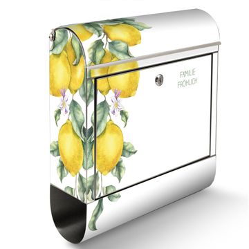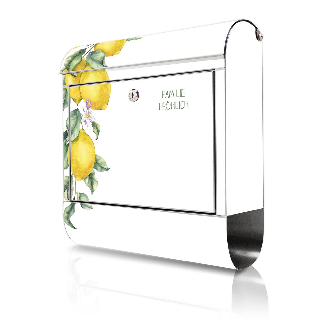 Wandbriefkasten Edelstahl Motiv Zitronenzweig Aquarell