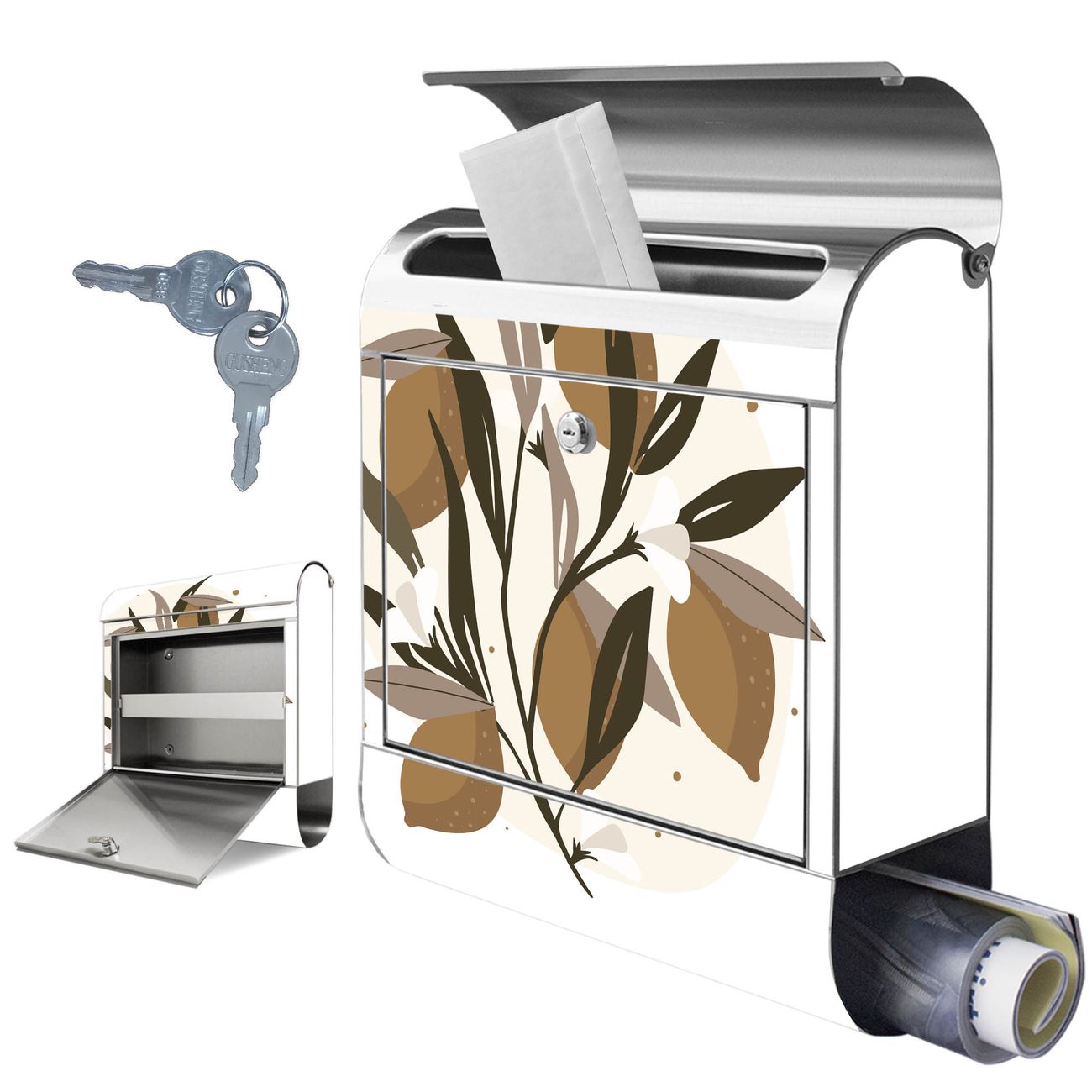 Wandbriefkasten Edelstahl Motiv Zitronenzweig Illustration