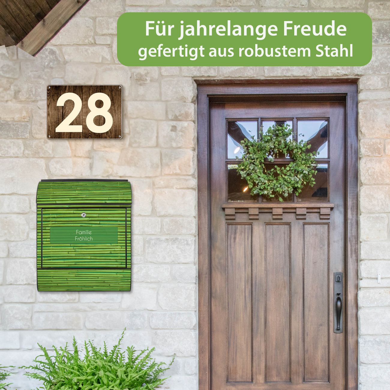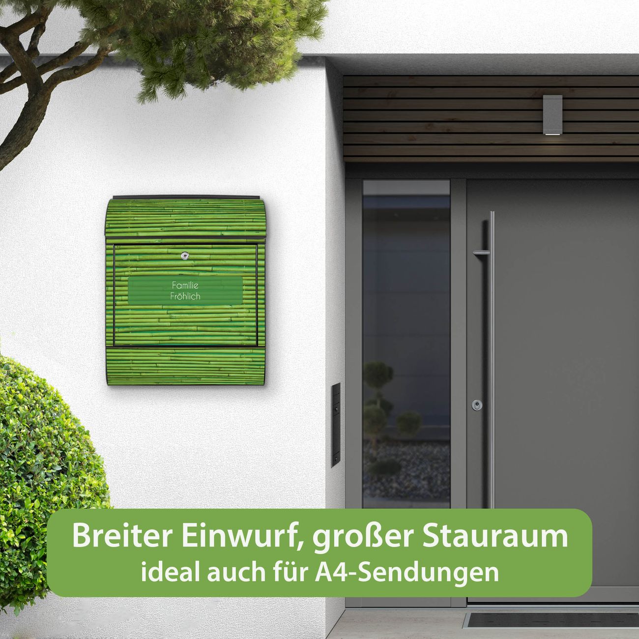 Großer Stahl Briefkasten Motiv Bambus Grün