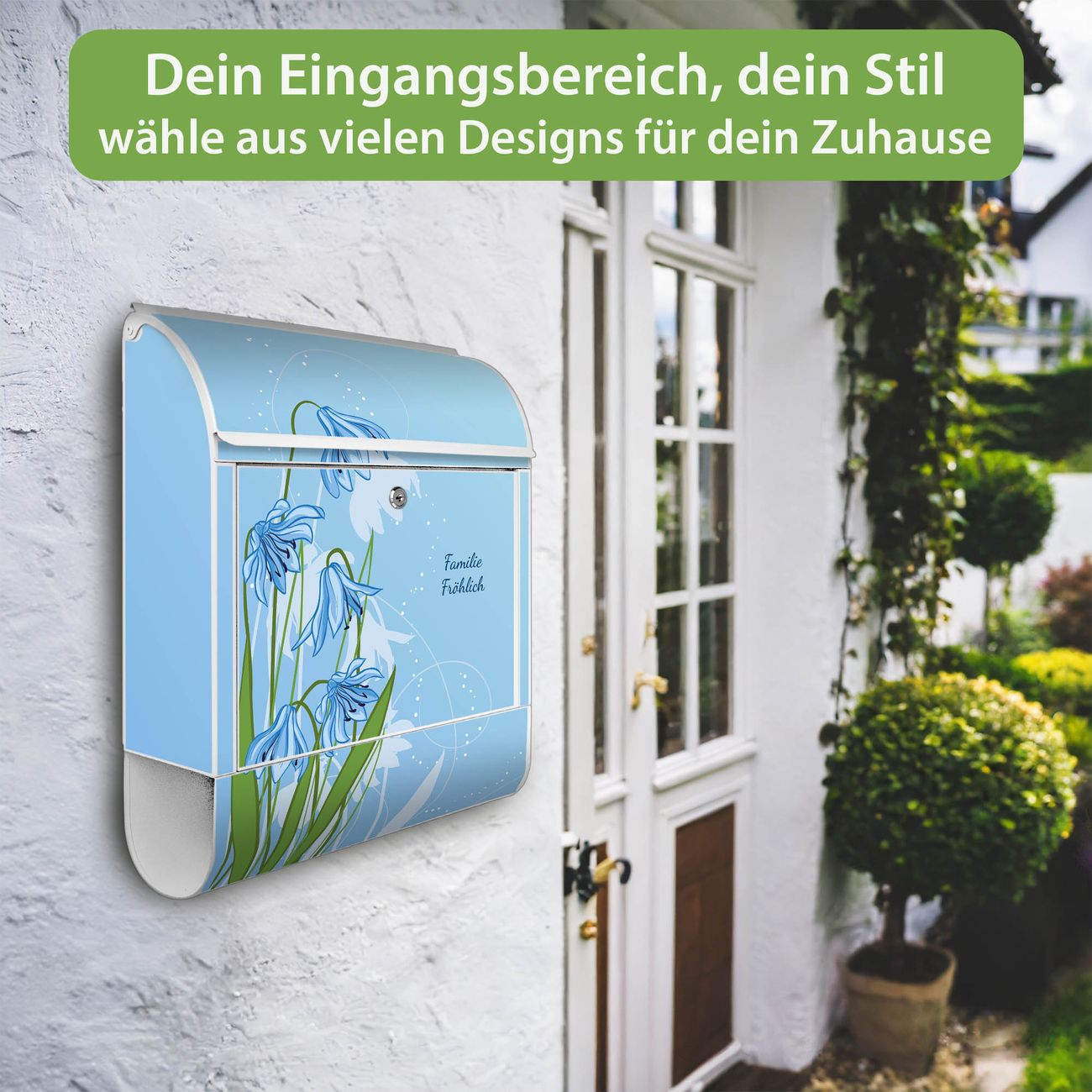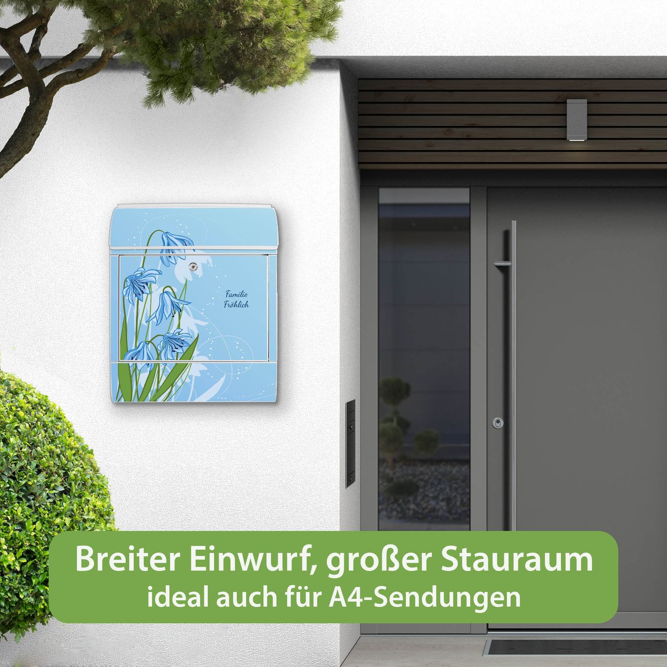 Großer Stahl Briefkasten Motiv Bergblaulilie