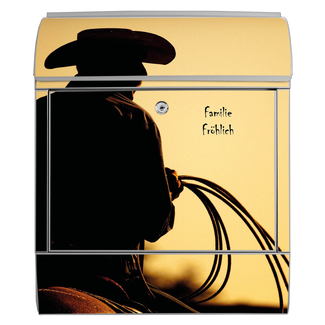 Großer Stahl Briefkasten Motiv Cowboy