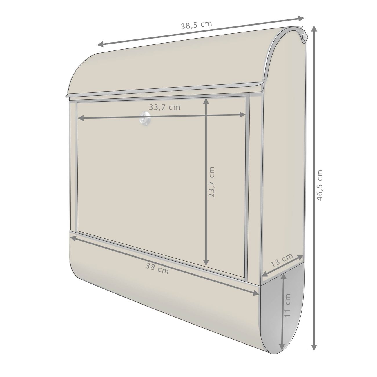 DESIGN: Der Postkasten mit Motiv Farbe Gold Metallic hat ein sehr ansprechendes und ausgefallenes Design, damit entlocken Sie Ihren Nachbarn und dem Postboten ein Lächeln. Heben Sie Sich von der tristen grauen Masse ab, ohne auf Funktionalität zu verzichten. DETAILS: Der Postkasten besteht aus pulverbeschichtetem Stahl. Er ist 38x46x12,5cm groß. Das Motiv besteht aus einer wetter- und UV-resistenten Folie, die mit einem Schutzlaminat überzogen ist, sodass der Briefkasten zusätzlich vor Kratzern geschützt ist. Der Briefkasten wird mit Montagematerial, zusätzlich zwei Schlüssel sowie einer Bohrschablone geliefert. NUTZEN: Sie können diesen Briefkasten sowohl als Wandbriefkasten montieren oder einen passenden Ständer kaufen und als Standbriefkasten einbetonieren. Die Größe bietet genügend Platz für Sendungen aller Art, der Einwurf fasst auch größere A4 Sendungen. BANJADO: Ihr Briefkasten wird in Sachsen in einer kleinen Manufaktur von Hand veredelt. Die Motivfolie ist lösungsmittelfrei und schutzlaminiert für einen langen Halt. Wir legen großen Wert auf die Verbindung von Funktionalität und Design. Sie erhalten Handarbeit aus Sachsen.