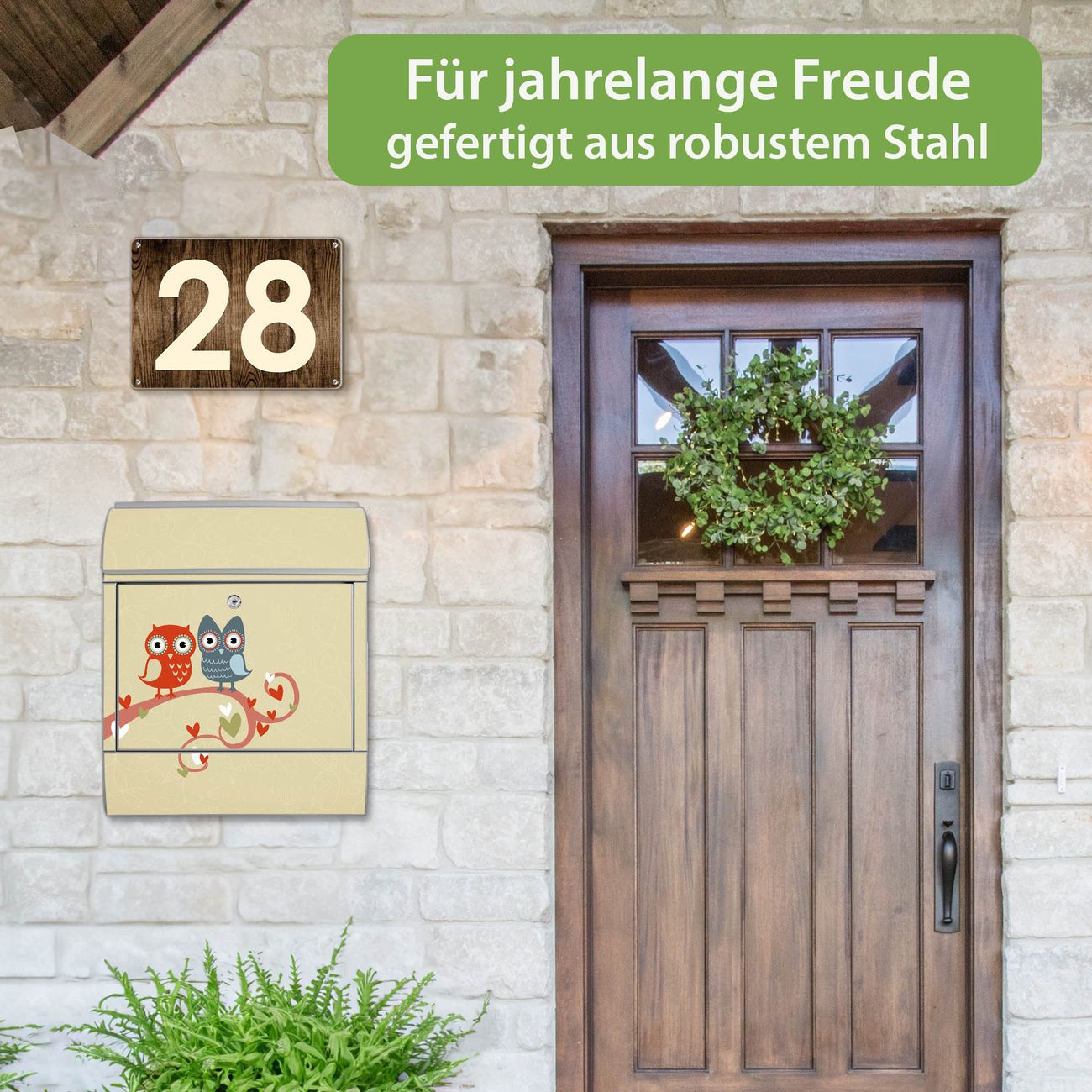 Motiv I Love You Nr. 10312 Material silber pulverbeschichtetes Stahlblech Dekorfolie UV-beständig, wetterfest Gesamtgröße 38x47x13cm BxHxT Briefschlitz 33x3,5cm BxH Gewicht ca. 3,5 kg Zubehör Montagezubehör, 2 Schlüssel, Bohrschablone