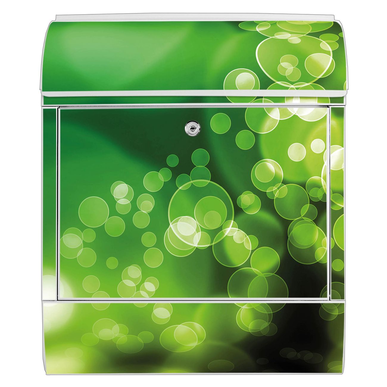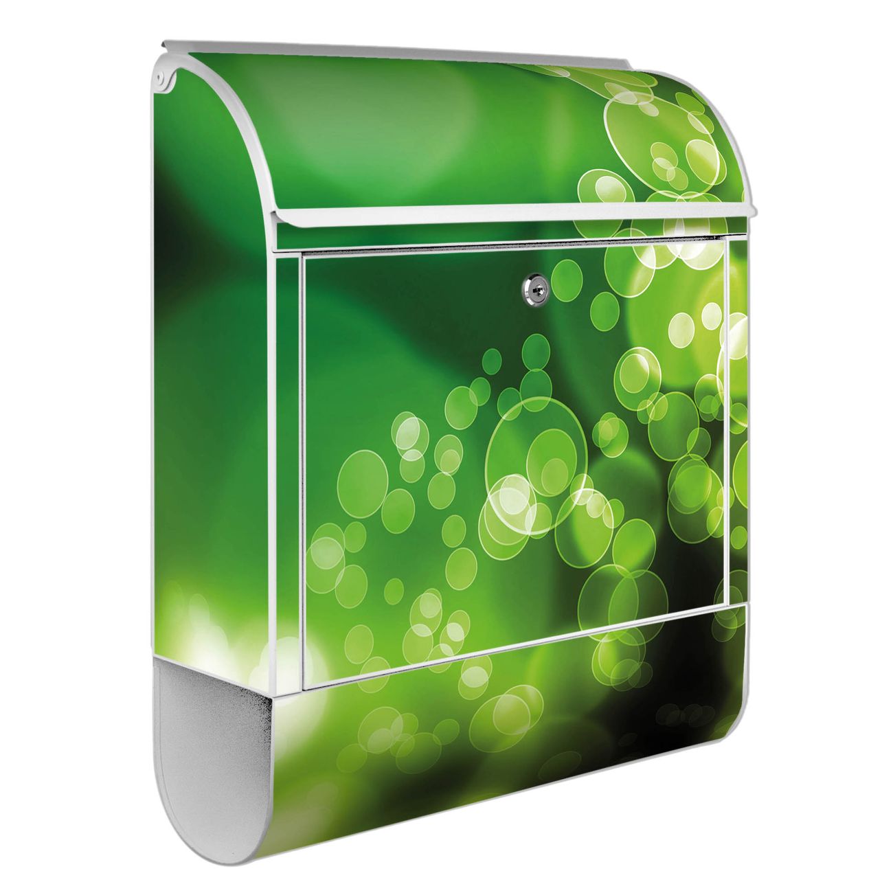 Motiv Lichtspiel Nr. 10283 Material weiß pulverbeschichtetes Stahlblech Dekorfolie UV-beständig, wetterfest Gesamtgröße 38x47x13cm BxHxT Briefschlitz 33x3,5cm BxH Gewicht ca. 3,5 kg Zubehör Montagezubehör, 2 Schlüssel, Bohrschablone