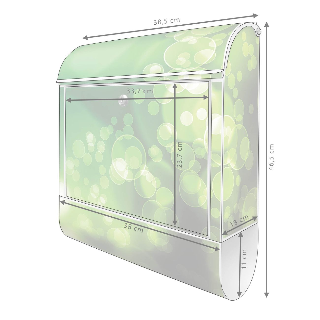 DESIGN: Der Postkasten mit Motiv Lichtspiel hat ein sehr ansprechendes und ausgefallenes Design, damit entlocken Sie Ihren Nachbarn und dem Postboten ein Lächeln. Heben Sie Sich von der tristen grauen Masse ab, ohne auf Funktionalität zu verzichten. DETAILS: Der Postkasten besteht aus pulverbeschichtetem Stahl. Er ist 38x46x12,5cm groß. Das Motiv besteht aus einer wetter- und UV-resistenten Folie, die mit einem Schutzlaminat überzogen ist, sodass der Briefkasten zusätzlich vor Kratzern geschützt ist. Der Briefkasten wird mit Montagematerial, zusätzlich zwei Schlüssel sowie einer Bohrschablone geliefert. NUTZEN: Sie können diesen Briefkasten sowohl als Wandbriefkasten montieren oder einen passenden Ständer kaufen und als Standbriefkasten einbetonieren. Die Größe bietet genügend Platz für Sendungen aller Art, der Einwurf fasst auch größere A4 Sendungen. BANJADO: Ihr Briefkasten wird in Sachsen in einer kleinen Manufaktur von Hand veredelt. Die Motivfolie ist lösungsmittelfrei und schutzlaminiert für einen langen Halt. Wir legen großen Wert auf die Verbindung von Funktionalität und Design. Sie erhalten Handarbeit aus Sachsen.