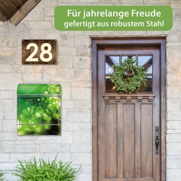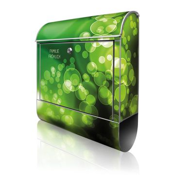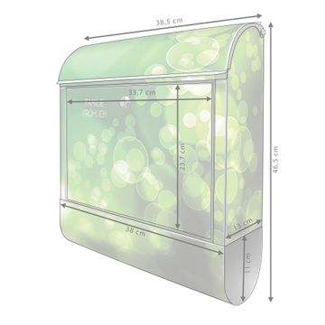 DESIGN: Der Postkasten mit Motiv Lichtspiel hat ein sehr ansprechendes und ausgefallenes Design, damit entlocken Sie Ihren Nachbarn und dem Postboten ein Lächeln. Heben Sie Sich von der tristen grauen Masse ab, ohne auf Funktionalität zu verzichten. DETAILS: Der Postkasten besteht aus pulverbeschichtetem Stahl. Er ist 38x46x12,5cm groß. Das Motiv besteht aus einer wetter- und UV-resistenten Folie, die mit einem Schutzlaminat überzogen ist, sodass der Briefkasten zusätzlich vor Kratzern geschützt ist. Der Briefkasten wird mit Montagematerial, zusätzlich zwei Schlüssel sowie einer Bohrschablone geliefert. NUTZEN: Sie können diesen Briefkasten sowohl als Wandbriefkasten montieren oder einen passenden Ständer kaufen und als Standbriefkasten einbetonieren. Die Größe bietet genügend Platz für Sendungen aller Art, der Einwurf fasst auch größere A4 Sendungen. BANJADO: Ihr Briefkasten wird in Sachsen in einer kleinen Manufaktur von Hand veredelt. Die Motivfolie ist lösungsmittelfrei und schutzlaminiert für einen langen Halt. Wir legen großen Wert auf die Verbindung von Funktionalität und Design. Sie erhalten Handarbeit aus Sachsen.
