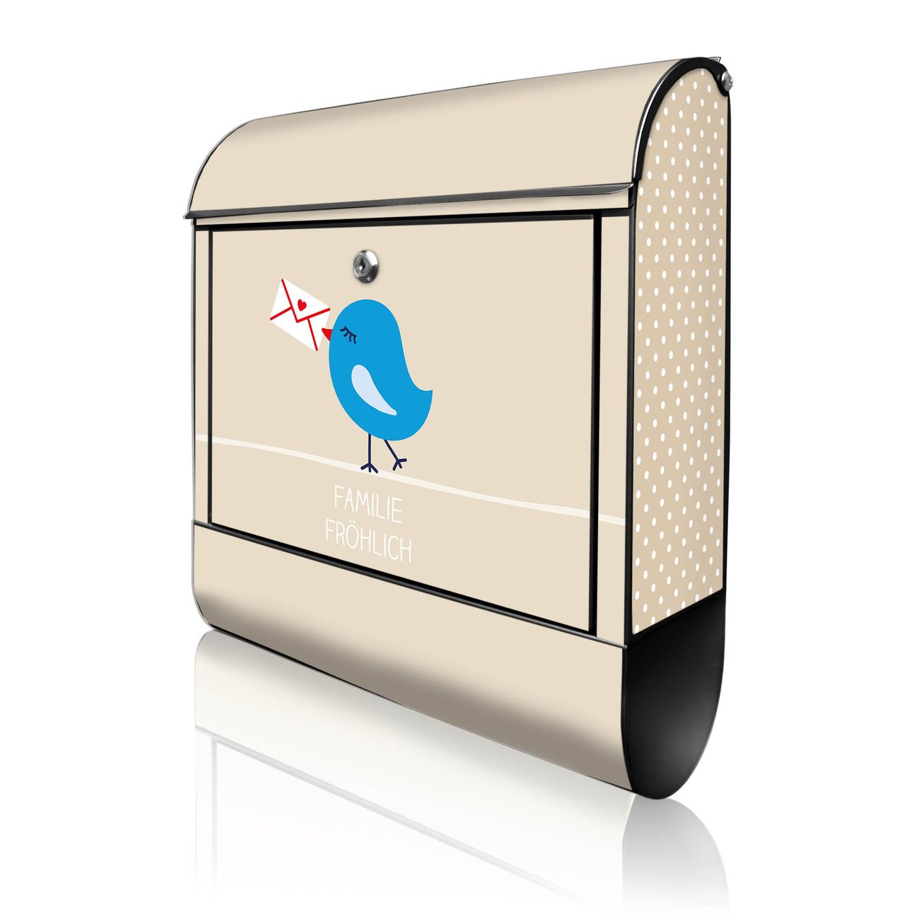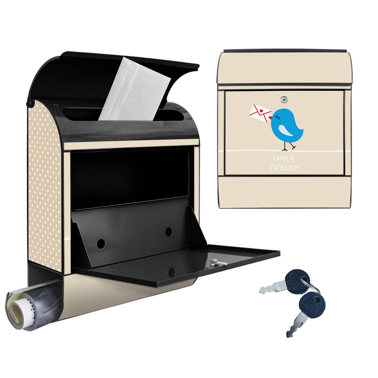 Motiv Liebesbrief Nr. 10345 Material schwarz pulverbeschichtetes Stahlblech Dekorfolie UV-beständig, wetterfest Gesamtgröße 38x47x13cm BxHxT Briefschlitz 33x3,5cm BxH Gewicht ca. 3,5 kg Zubehör Montagezubehör, 2 Schlüssel, Bohrschablone