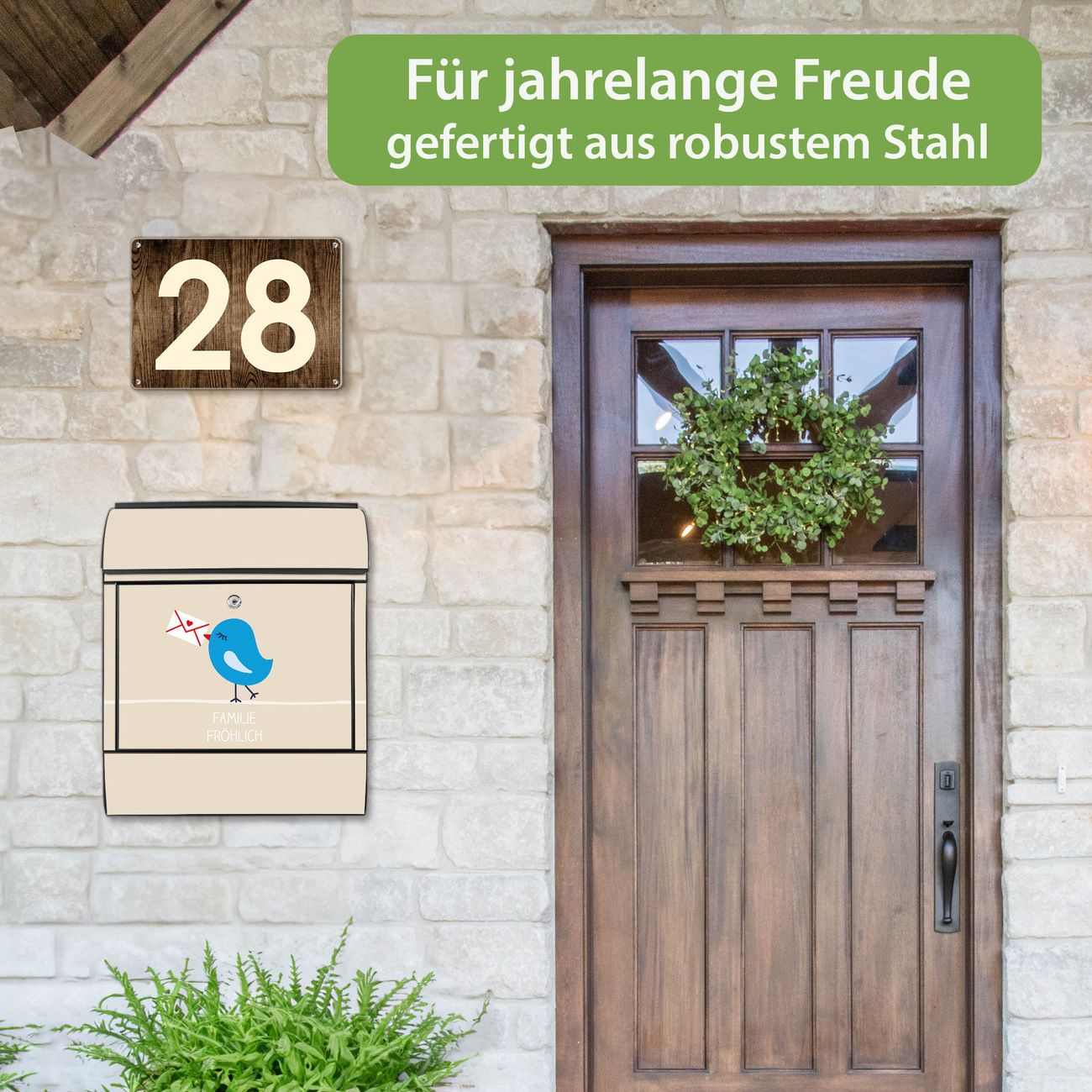 DESIGN: Der Postkasten mit Motiv Liebesbrief hat ein sehr ansprechendes und ausgefallenes Design, damit entlocken Sie Ihren Nachbarn und dem Postboten ein Lächeln. Heben Sie Sich von der tristen grauen Masse ab, ohne auf Funktionalität zu verzichten. DETAILS: Der Postkasten besteht aus pulverbeschichtetem Stahl. Er ist 38x46x12,5cm groß. Das Motiv besteht aus einer wetter- und UV-resistenten Folie, die mit einem Schutzlaminat überzogen ist, sodass der Briefkasten zusätzlich vor Kratzern geschützt ist. Der Briefkasten wird mit Montagematerial, zusätzlich zwei Schlüssel sowie einer Bohrschablone geliefert. NUTZEN: Sie können diesen Briefkasten sowohl als Wandbriefkasten montieren oder einen passenden Ständer kaufen und als Standbriefkasten einbetonieren. Die Größe bietet genügend Platz für Sendungen aller Art, der Einwurf fasst auch größere A4 Sendungen. BANJADO: Ihr Briefkasten wird in Sachsen in einer kleinen Manufaktur von Hand veredelt. Die Motivfolie ist lösungsmittelfrei und schutzlaminiert für einen langen Halt. Wir legen großen Wert auf die Verbindung von Funktionalität und Design. Sie erhalten Handarbeit aus Sachsen.
