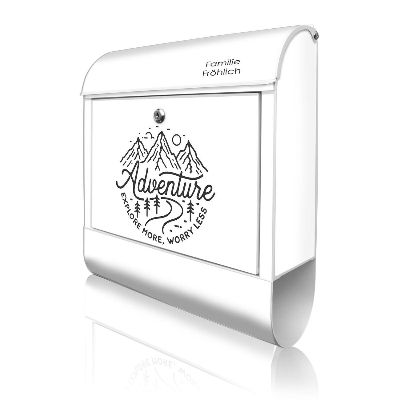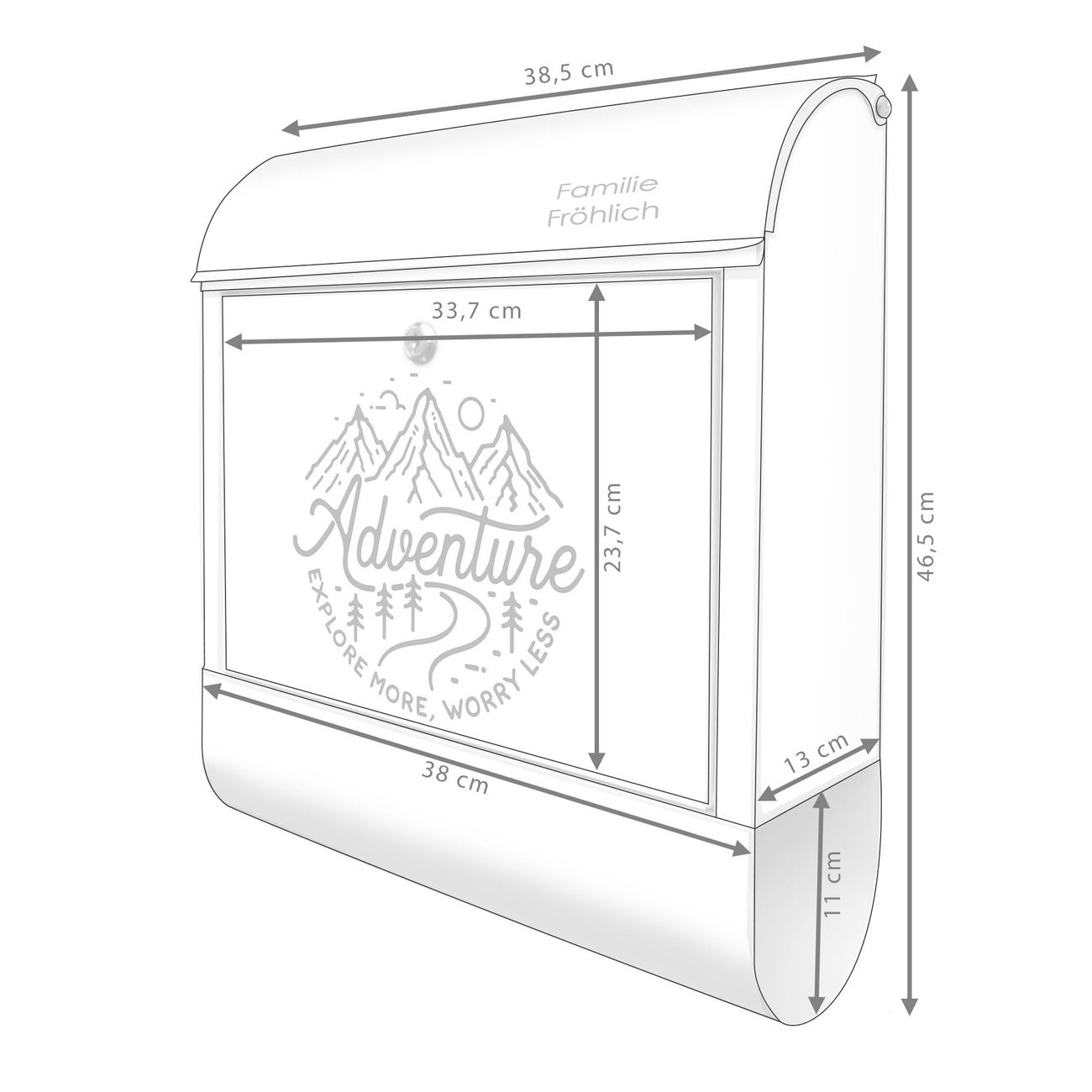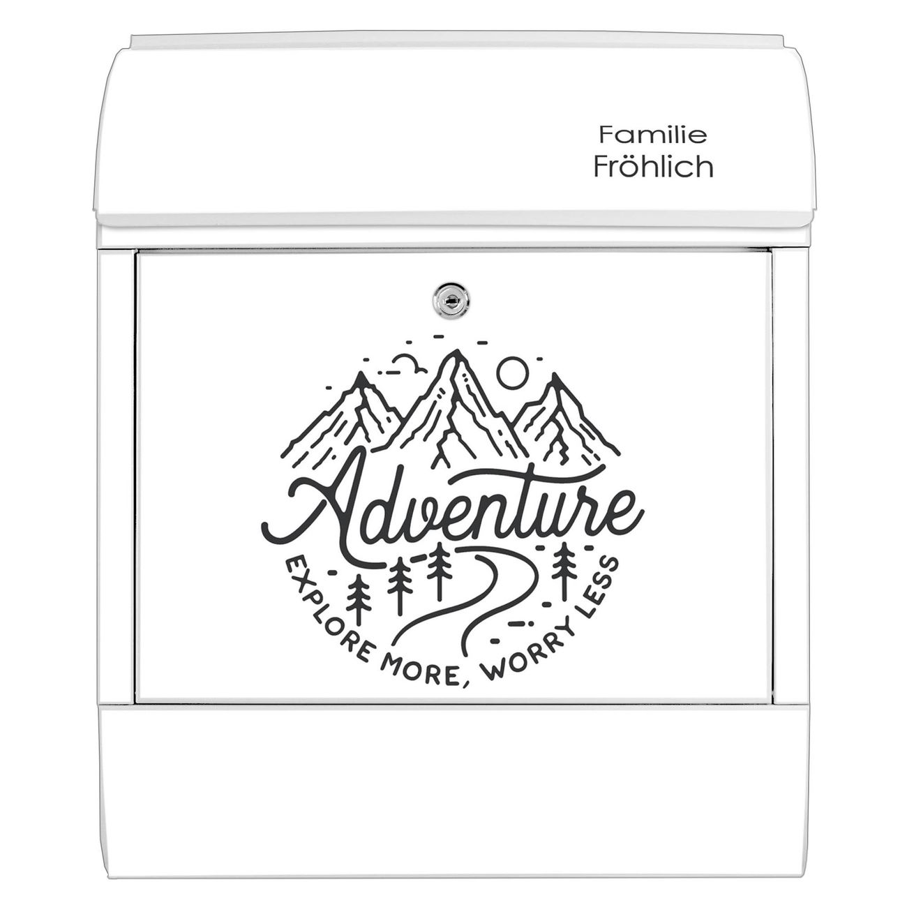 Großer Stahl Briefkasten Motiv Abenteuerliche Bergskizze mit Spruch