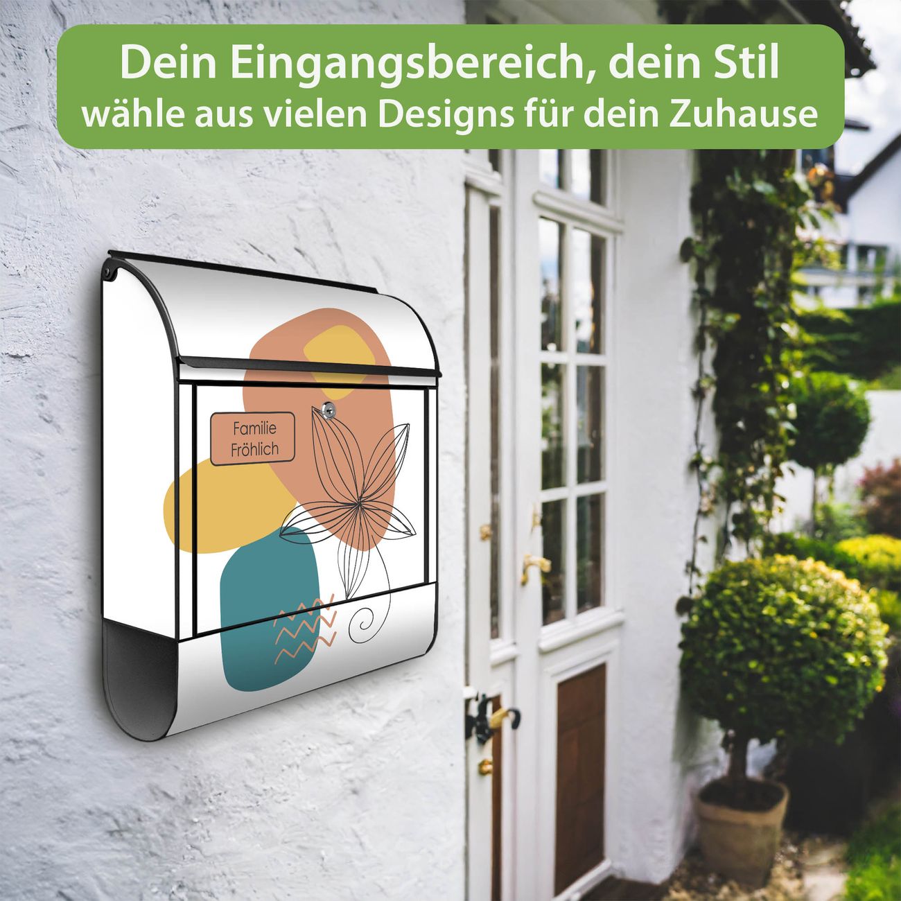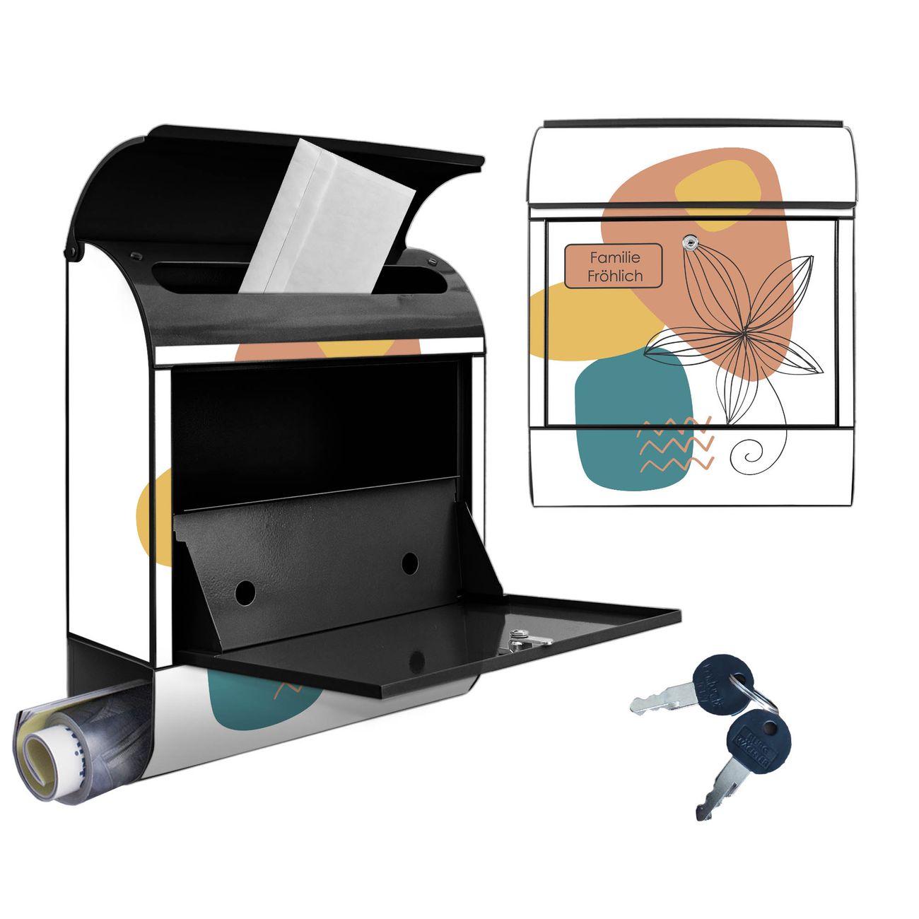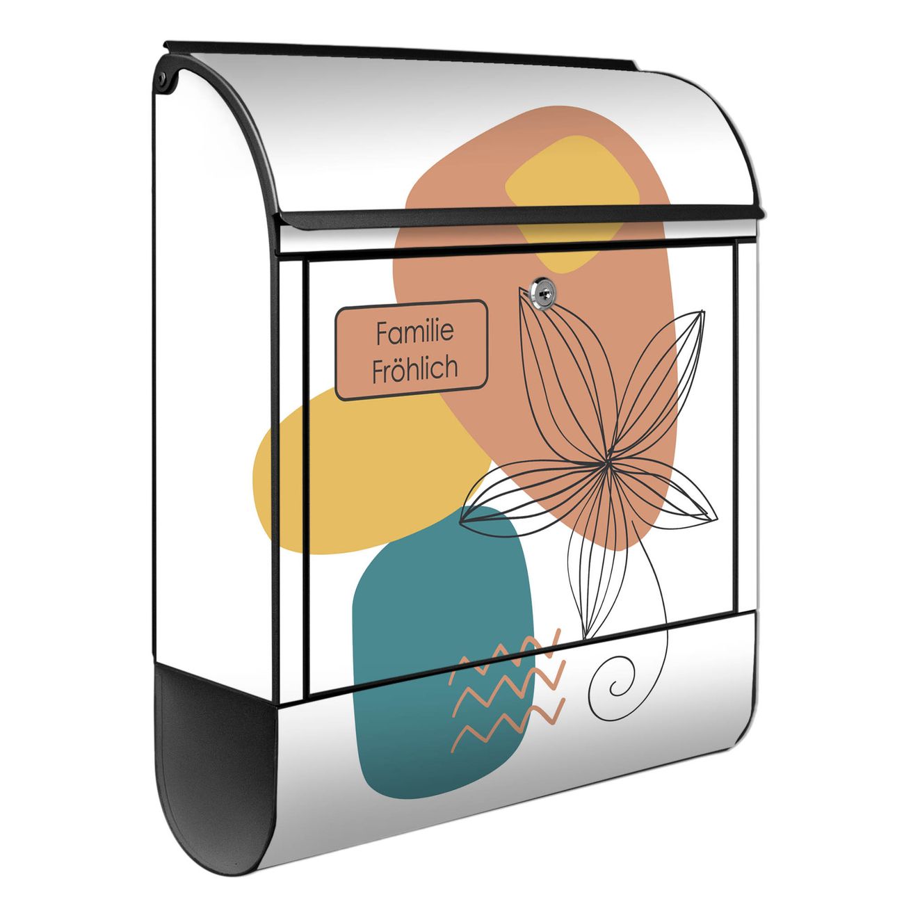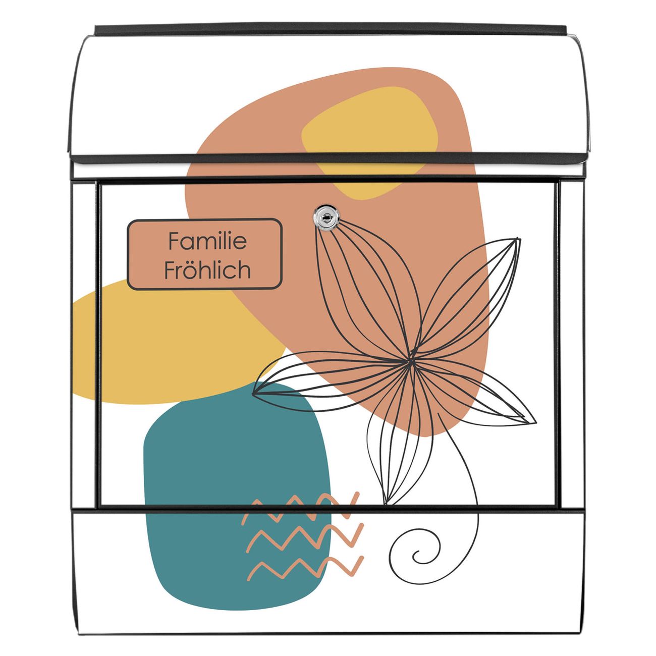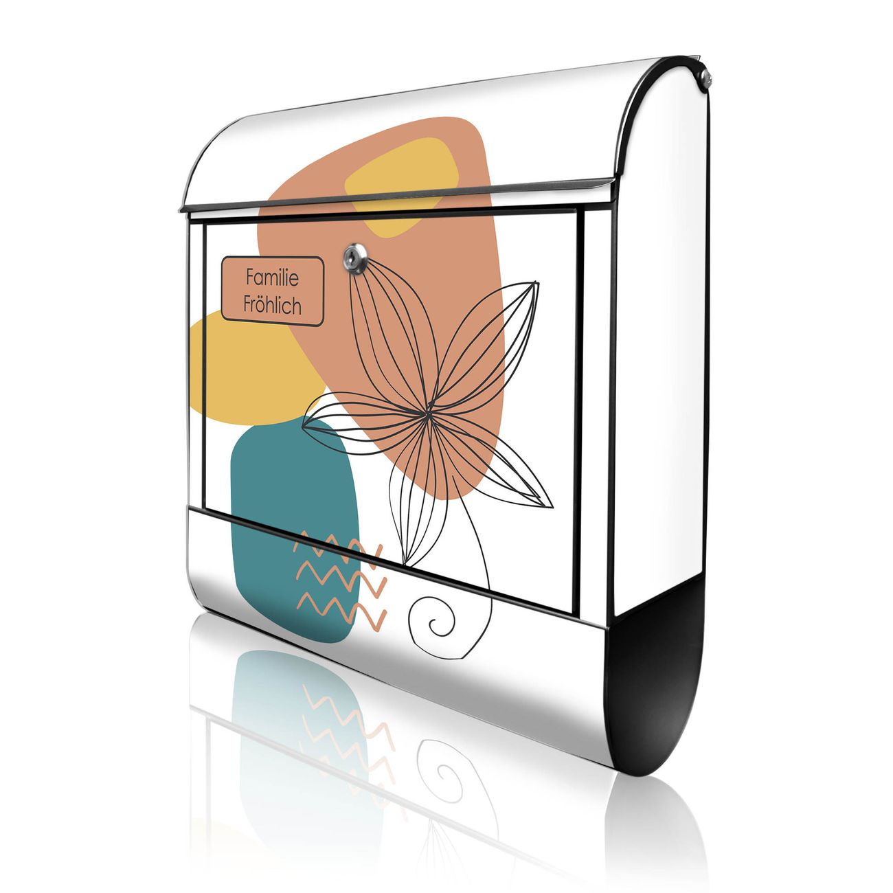 Großer Stahl Briefkasten Motiv Abstrakte Blumen Lineart