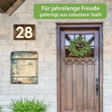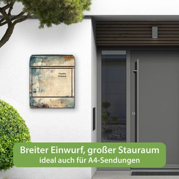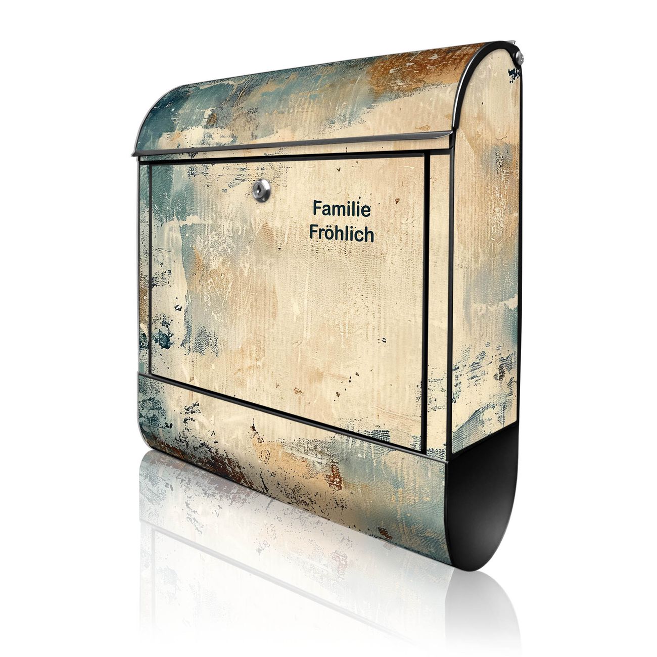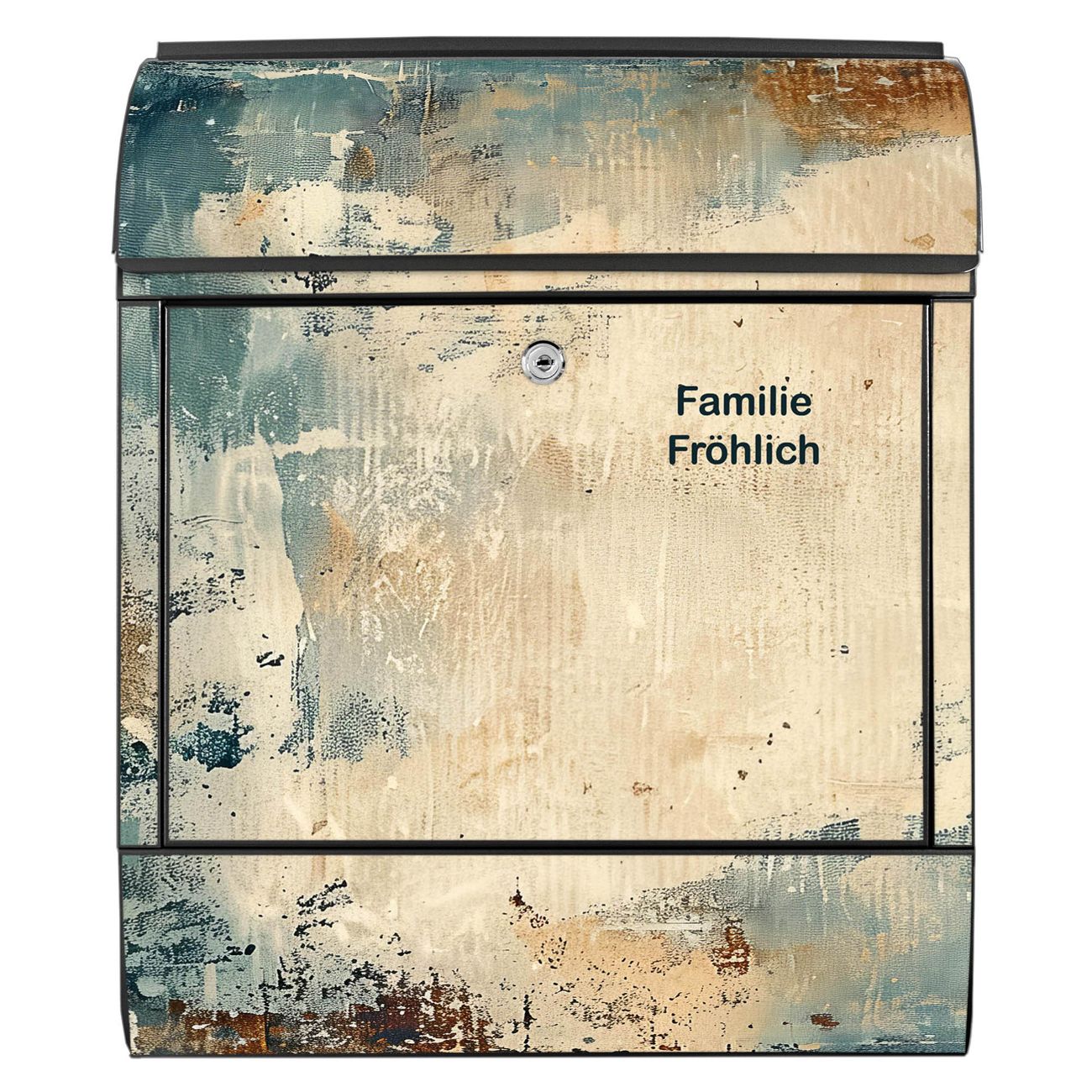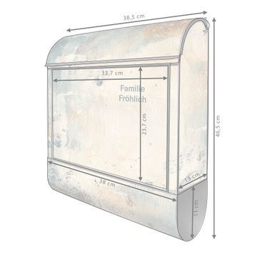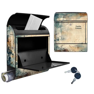DESIGN: Der Postkasten mit Motiv Motiv Abstrakte Textur hat ein sehr ansprechendes und ausgefallenes Design, damit entlocken Sie Ihren Nachbarn und dem Postboten ein Lächeln. Heben Sie Sich von der tristen grauen Masse ab, ohne auf Funktionalität zu verzichten. DETAILS: Der Postkasten besteht aus pulverbeschichtetem Stahl. Er ist 38x46x12,5cm groß. Das Motiv besteht aus einer wetter- und UV-resistenten Folie, die mit einem Schutzlaminat überzogen ist, sodass der Briefkasten zusätzlich vor Kratzern geschützt ist. Der Briefkasten wird mit Montagematerial, zusätzlich zwei Schlüssel sowie einer Bohrschablone geliefert. NUTZEN: Sie können diesen Briefkasten sowohl als Wandbriefkasten montieren oder einen passenden Ständer kaufen und als Standbriefkasten einbetonieren. Die Größe bietet genügend Platz für Sendungen aller Art, der Einwurf fasst auch größere A4 Sendungen. BANJADO: Ihr Briefkasten wird in Sachsen in einer kleinen Manufaktur von Hand veredelt. Die Motivfolie ist lösungsmittelfrei und schutzlaminiert für einen langen Halt. Wir legen großen Wert auf die Verbindung von Funktionalität und Design. Sie erhalten Handarbeit aus Sachsen.