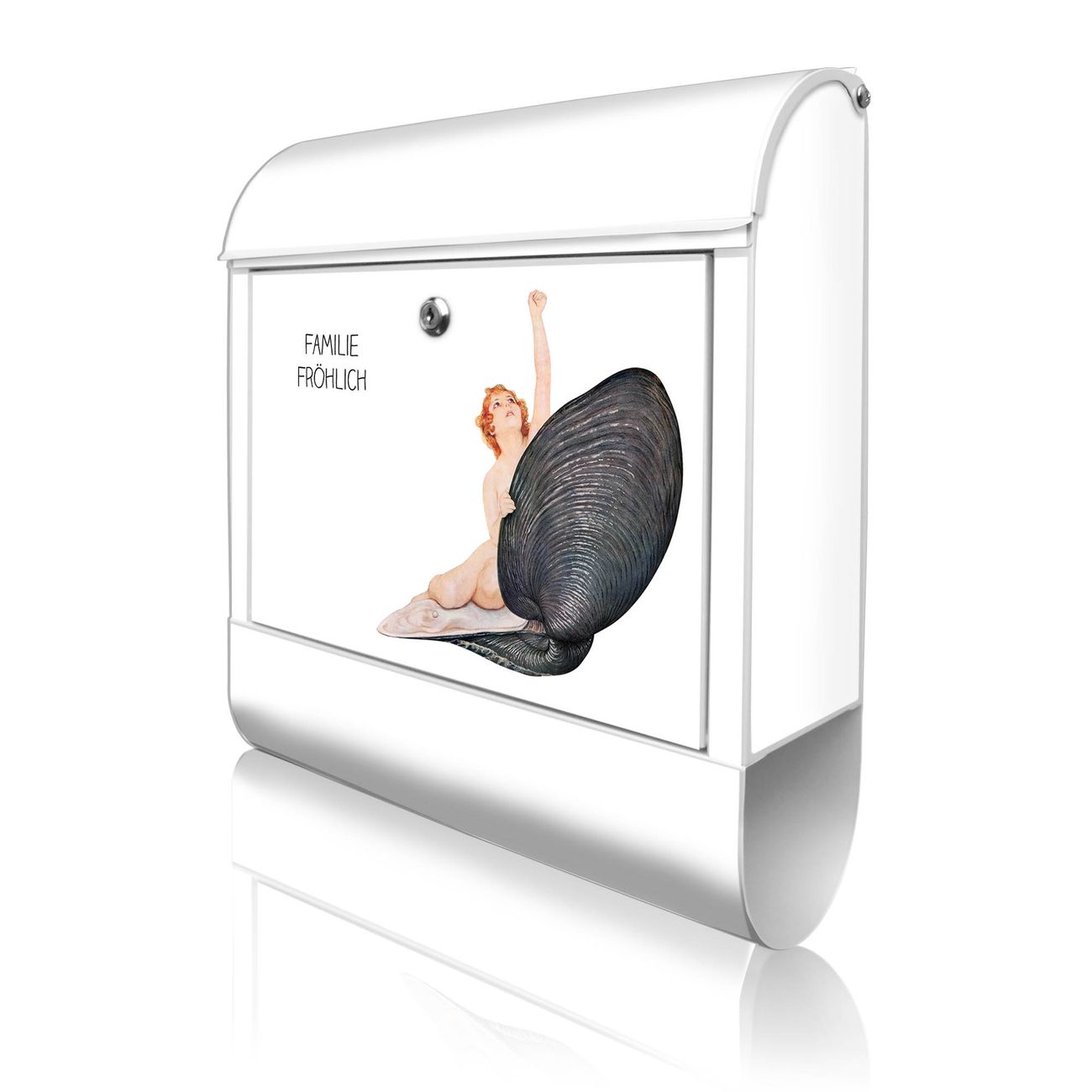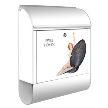 Großer Stahl Briefkasten Motiv Aufbruch aus der Muschel Vintage