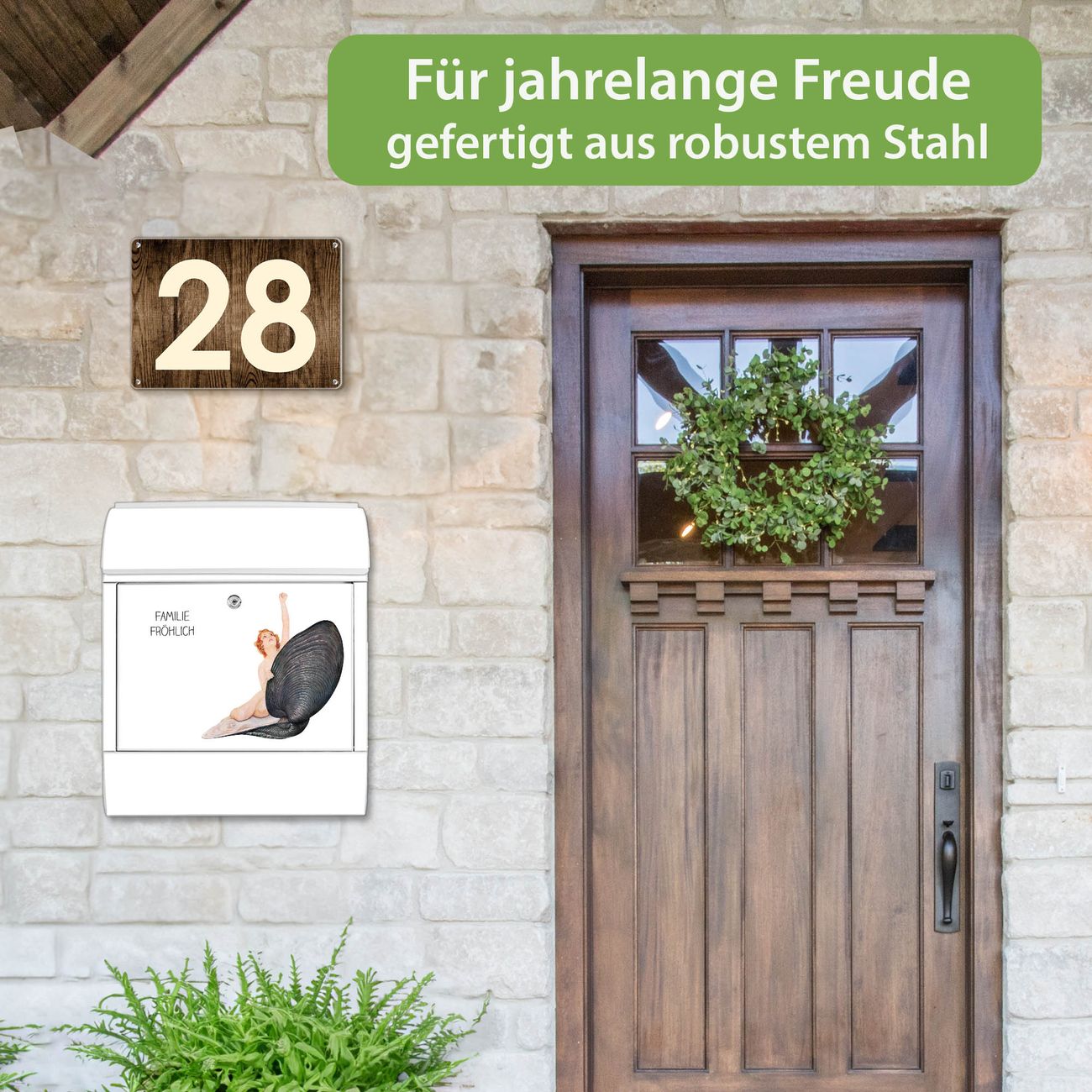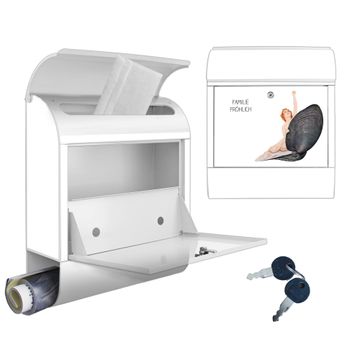 DESIGN: Der Postkasten mit Motiv Motiv Aufbruch aus der Muschel Vintage hat ein sehr ansprechendes und ausgefallenes Design, damit entlocken Sie Ihren Nachbarn und dem Postboten ein Lächeln. Heben Sie Sich von der tristen grauen Masse ab, ohne auf Funktionalität zu verzichten. DETAILS: Der Postkasten besteht aus pulverbeschichtetem Stahl. Er ist 38x46x12,5cm groß. Das Motiv besteht aus einer wetter- und UV-resistenten Folie, die mit einem Schutzlaminat überzogen ist, sodass der Briefkasten zusätzlich vor Kratzern geschützt ist. Der Briefkasten wird mit Montagematerial, zusätzlich zwei Schlüssel sowie einer Bohrschablone geliefert. NUTZEN: Sie können diesen Briefkasten sowohl als Wandbriefkasten montieren oder einen passenden Ständer kaufen und als Standbriefkasten einbetonieren. Die Größe bietet genügend Platz für Sendungen aller Art, der Einwurf fasst auch größere A4 Sendungen. BANJADO: Ihr Briefkasten wird in Sachsen in einer kleinen Manufaktur von Hand veredelt. Die Motivfolie ist lösungsmittelfrei und schutzlaminiert für einen langen Halt. Wir legen großen Wert auf die Verbindung von Funktionalität und Design. Sie erhalten Handarbeit aus Sachsen.